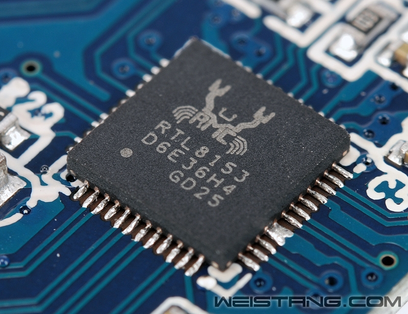 瑞昱的RTL8153是今年7月份推出的一款USB 3.0-to-Gigabit Ethernet的网卡芯片,其一个重要的特性就是支持自动安装驱动程序功能,包括藉由内建的 CDC-ECM 技术,让使用者在 Android(Linux)、MAC OS 以及支援内置驱动的 Windows 8.1 等设备上享受即插即用。同时芯片内支持5V转3.3V供电设计,这样从USB取电也就更为方便了。