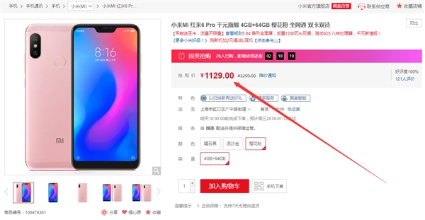 红米6 Pro是小米于6月26日开售的一款千元全面屏,时隔不到一个月,该机在第三方电商平台开始降价。 7月14日,红米6 Pro在国美商城秒杀,4GB+64GB版秒杀价1129元,比首发价便宜170元。 该机采用5.84英寸全高清显示屏,屏幕纵横比为19:9,搭载高通骁龙625处理器,电池容量为4000mAh。 拍照表现上,红米6 Pro后置1200万+500万像素双镜头,其中1200万主镜头单位像素面积为1.25μm,支持PDAF相位对焦,支持人像模式。 官方介绍,红米6 Pro基于AI人工智能计算人像模式,边缘识别更准确,背景虚化渐进真实,同时支持AI美颜。 前置镜头为500万像素,虽然是单摄,但是基于AI人工智能实现了AI人像模式,也能拍出主体突出、背景虚化的艺术美感照片。 此外,官方强调红米手机经过14571项品质检测,达到了与小米旗舰系列同等级标准。严格筛选供应商,70%以上供应商与苹果供应商重叠,确保品质可靠。 |