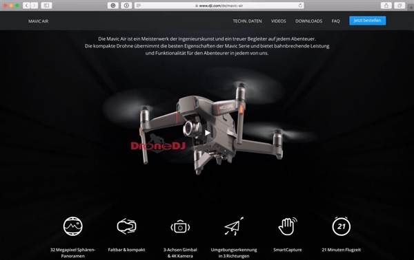 英国零售商Argos在产品目录中更新了大疆Mavic 2(小型、可折叠便携式无人机)的有关信息,包含Mavic 2 Pro和Mavic 2 Zoom两款。 配置上,Mavic 2 Pro的航拍系统集成1英寸CMOS、哈苏(Hasselblad)镜头,但不支持光学变焦。Zoom版升级到两倍光学变焦(24~48mm),然而CMOS缩水为索尼IMX 226(1/1.7英寸)。 Mavic 2代的飞行时间为31分钟,最高时速为48英里(约77Km/h)。对比上一代Mavic,最佳状态的飞行时间是27分钟、最高时速是64公里/小时。 其他特性还有360度避障系统,不过4K视频拍摄能力没有提及,只是说在距离超8公里时会自动传送1080P转化视频,似乎是一个信号。 值得一提的是,此前德国大疆官网曾意外泄露了Mavic 2 企业版,飞行时间缩短为21分钟。 大疆原定于7月18日举办“See the Bigger Picture”为主题的Maviv 2发布会,然而已经无限期推迟。 图为企业版 |