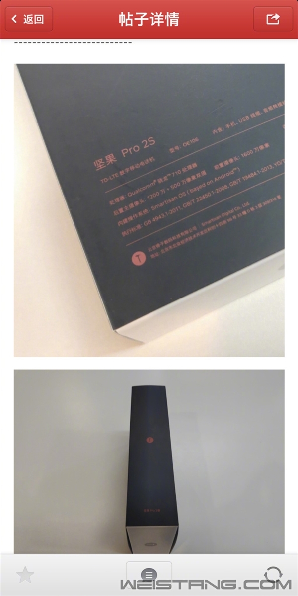 在今年5月15日的鸟巢发布会上,罗永浩宣布,未来锤子科技的手机无论旗舰、高端、中端、低端,通通都属于坚果来命名,这也正式奠定了坚果品牌的地位。 发布会上,锤子带来了旗舰机坚果R1,同时带来了中端机坚果Pro 2特别版。从最新消息来看,接下来锤子还将在坚果新机上发力。 上个月中旬,一款型号为OE106的新机通过了3C认证,支持18W快充。当时有人猜测这可能是坚果Pro 3,最新爆料显示,该机将被命名为坚果Pro 2S,将于本月发布。 今日,有微博数码博主曝光了一组坚果新机的包装盒谍照,照片显示,该机命名为坚果Pro 2S。配置方面,新机搭载高通骁龙710处理器,后置1200万+500万像素双摄, 前置镜头为1600万像素。很显然,这将又是一款中端走量的机器。 目前,锤子官网在售的包括坚果R1(2999元起)、坚果3(1299元起)、坚果Pro 2特别版(1899元起)、坚果Pro 2(1799元起)、坚果Pro(1499元起)。 由此判断,坚果Pro 2S是坚果Pro 2的升级版,由骁龙660/636升级为骁龙710,其它变化不大,预计不会超过2000元。 |