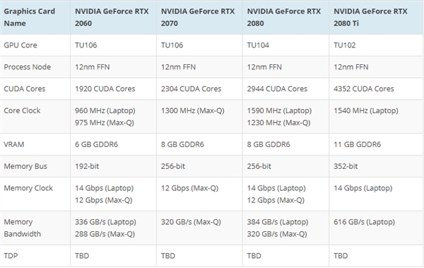 上周,NVIDIA RTX移动版显卡的消息频频曝光,让CES 2019首秀的传言显得越发靠谱。 经查,3DMark中已经有了RTX 2060 Max-Q的身影,核心频率仅975MHz,显存频率1500MHz,将匹配的是针脚带宽12Gbps的6GB GDDR6显存。 不过,还有一款960MHz非MaxQ的RTX 2060,显存频率1750MHz,也就是匹配14Gbps的GDDR6显存。得分方面,RTX 2060移动版目前位于GTX 1070移动版和GTX 1070 Max-Q之间。 而在GeekBench 4数据库中,联想、惠普、华硕的笔记本更是包揽了RTX 2070 Max-Q、RTX 2080移动版/Max-Q和RTX 2080 Ti移动版等几乎完整的家族阵容。其中,识别频率最高的是RTX 2080移动版,达到1590MHz。 由于这一代RTX 20系显卡的功耗有所上涨,覆盖175~250W,对于移动版尤其是Max-Q轻薄设计来说,可能需要重换模具或者对频率进行手术。 |
