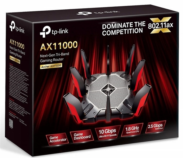 TP-Link今天正式发布了自己的第一款802.11ax Wi-Fi路由器,包括Archer AX11000、Archer AX6000两款型号,均支持第六代Wi-Fi标准,并集成了各种先进无线技术。 Archer AX11000的外观造型十分霸气,尤其是四周围绕着八根庞大的天线,就像个八爪鱼,红黑色调也尽显高端气质,最高传输率高达10756Mbps,包括一个2.4GHz频段上的1148Mbps、两个5GHz频段上的各自4804Mbps。 Archer AX6000则像个小号八爪鱼,天线尺寸小了不少,最高传输率降至5952Mbps(仍然四倍于802.11ac),包括一个2.4GHz频段的1148Mbps、一个5GHz频段的4804Mbps。 二者内部都配备了1.8GHz四核心处理器,分别有三个、两个Wi-Fi协处理器,搭配1GB内存、512MB闪存,外部提供两个2.5千兆WAN口、八个千兆LAN口,以及USB-A 3.0、USB-C 3.0。 两款路由都支持OFDMA(正交频分多址)、AX MU-MIMO(多用户多入多出)、1024-QAM调制、160MHz通道等高级网络技术,以及链接聚合(Link Aggregation)、发送时间公平性(Airtime Fairness)、频段切换(Band Steering)、DFS动态频率、VPN服务器、多操作模式等功能,还可以通过蓝牙、Tether应用进行配置。 Archer AX6000已经在亚马逊上接受预订,价格349.99美元,约合人民币2420元。 Archer AX11000明年一月底上市,价格449.99美元,约合人民币3110元。 在此之前,华硕RT-AX88U、网件A8X 802.11ax路由器已经陆续问世,最高峰值速率均为6Gbps,分别要2999元、400美元(约合人民币2770元)。 |