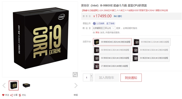 发布整整两个月之后,Intel第九代酷睿X系列桌面发烧处理器终于在国内上架开卖了,从8核心到18核心全部7款型号同时登场。 九代酷睿X仍然是14nm工艺、Skylake-X架构,和八代完全相同,不过制造工艺从14nm+优化为14nm++,内部导热材料从硅脂升级为钎焊,从而普遍提升了频率,部分型号还增加了核心、缓存,但热设计功耗统一提高到165W,而且硬件上依然存在幽灵、熔断安全漏洞。 酷睿i9-9980XE作为旗舰型号、唯一一款Extreme至尊版,配备了多达18核心36线程,三级缓存24.75MB,基准频率3.0GHz,睿频2.0加速频率4.4GHz(任意单核心可跑在此频率上),睿频3.0 Max加速频率4.5GHz(自动选定体质最好的两个核心跑在此频率上),相比于上代i7-7980XE分别增加了40MHz、200MHz、100MHz。 i9-9980XE的北美区价格为1979美元,和上代相同,而国内首发价格高达17499元,比上代贵了1500元,幅度约9%(i7-7980XE目前仅降至13999元),平均每个核心972元。 相比之下,AMD 32核心64线程的锐龙线程撕裂者2990WX在国内首发价格13999元,目前微降至13599元,平均每个核心仅423元,还不到i9-9980XE的一半。 九代酷睿X系列其他型号价格,以及对比上代的涨价幅度: - i9-9960X 16核心32线程:14299元(10%) - i9-9940X 14核心28线程:11699元(6%) - i9-9920X 12核心24线程:10699元(19%) - i9-9900X 10核心20线程:8699元(16%) - i9-9820X 10核心20线程:7299元(62%) - i7-9800X 8核心16线程:5299元(77%) 很明显, 同样核心数量的情况下,九代酷睿X的价格涨了少则6%,多则将近20%,而最低端两款型号在各自增加了2个核心后,价格竟然猛涨了七成左右。 对比八代酷睿X系列首发价格和现在价格: - i9-7960X 16核心32线程:12999元(10899元) - i9-7940X 14核心28线程:10999元(8299元) - i9-7920X 12核心24线程:8999元(7499元) - i9-7900X 10核心20线程:7499元(7199元) - i9-7820X 8核心16线程:4499元(4499元) - i7-7800X 6核心12线程:2999元(2999元) 再对比AMD撕裂者二代首发价格: - TR 2970WX 24核心48线程:9999元 - TR 2950X 16核心32线程:6999元 - TR 2920X 12核心24线程:4999元 |