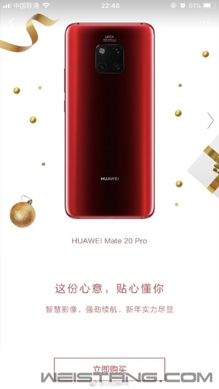 12月25日,华为消费者业务宣布,2018年华为智能手机发货量(含荣耀)正式突破2亿台。其中,旗下麒麟980当家旗舰Mate 20系列上市两个月发货量突破500万台。 目前,华为商城Mate 20 Pro依然全系处于抢购状态,每天10:08分限量开售,目前所有配色、所有容量版本均显示“已售完”,火爆程度可见一斑。 在售的Mate 20 Pro提供亮黑色、宝石蓝、樱粉金、翡冷翠、极光色五款配色可选,2019新年到来,又有两款新配色曝光。 今日,有微博数码博主晒出了华为Mate 20 Pro的两款新配色名称:馥蕾红、璨星蓝。与此同时,Mate 20 Pro馥蕾红版本的渲染图也一同流出,新年到来颇为应景,预计推出后会收到不少女性用户喜爱。 作为2018年华为的集大成之作,华为Mate 20系列不仅首发7nm麒麟980处理器,还带来了新一代徕卡三摄、40W快充、屏内指纹、3D结构光、石墨烯液冷散热等众多“顶格”配置。 前不久,中国移动2018年智能硬件质量报告显示,综合能力上,3500元以上的手机中华为Mate 20系列拿下头名。 |