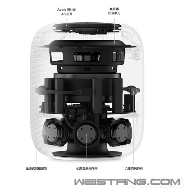 作为Apple的创新无线扬声器,HomePod兼具“智能”和“音响”两个部分,内置了Siri 语音助手、可以连接HomeKit 智能家居配件、优于同类产品的音质表现等特点,让HomePod出现在很多消费者的购买清单上。 不过,HomePod一直没有在国内发售,海外购买回来的HomePod搭配英文版的Siri,这点阻碍了不少中国消费者的体验。 苹果官网昨日公布了HomePod在中国的发售信息,HomePod于将于1月18日星期五开始在中国大陆和香港市场推出,售价2799元。 那么,国行版HomePod的音质体验如何?Siri是否足够贴心?本期《凰家评测》就带大家一起体验一下,看看这款产品是否值得购买。 HomePod在家庭环境中 开箱: HomePod的外包装比较简单,打开包装后取出HomePod,可以看到这台“圆滚滚”的小音响。顶部是可触控的操作区域和Siri显示区域,四周采用无缝式网眼织物包覆设计,产品设计一如既往的简洁风。虽然有些重,但体积并不算大,放在家庭环境中并不显眼。 连接: 既然是智能音响,第二步就需要进行相关连接和设置。对于超怕麻烦的人来说,简洁快速的设置和连接步骤比较加分,在HomePod 开机后,将iOS 设备靠近它,就会主动弹出提醒。比如在我的iPhone上,可以根据提示来: 选择想要放置HomePod房间 启用个人请求。如果你想通过HomePod 发信息或设置提醒,需启用此功能 传输设置。你的iCloud(iTunes 和Apple Music 设置将全部自动传输至HomePod 连接步骤 连接之后, HomePod 现在会出现在我的家庭app 的主屏幕上,轻点并按住它即可调出设置,连接与手机相同的无线网络,之后就可以进行使用了。 整个连接过程非常简单,只需要几分钟即可设置完毕。值得注意的是,如果有第二台HomePod,iPhone上的提示会自动显示是否需要设置立体声,点击确认后可以进行快速设置。 在家庭App里,可以进行更多的细节设置和更改,比如调整房间、是否开始允许儿童不宜内容、是否使用听歌历史记录等。 在进行完相关步骤之后,我们就可以来体验这款智能音响了。既然是智能音响,那么就分为两个部分来体验:一方面是作为音响音质体验如何,一方面是语音助手等体验是否足够智能。 音质 内部构造 首先来看一下内部构造,HomePod具备一些音频技术,包括高振幅低音单元和定制的七高音单元阵列,在大A8 芯片的支持下,可以不断分析音乐和环境,调节低频部分,并自动调整适合的音响效果。 据苹果官方介绍,HomePod具有空间感知技术:当音乐响起的时候,HomePod 的麦克风阵列会侦测附近物体表面的声音反射,并感知自己是靠着墙壁(摆在书架上还是独自立在房间中)来进行对应的调节。 比如独自立式摆放时,HomePod 会360 度地向整个房间传出均匀一致的声音,在我们的实际体验中,变换不同的方向听起来确实都是一样的感受。 HomePod具有空间感知技术 当HomePod 靠墙或放在书架上时,A8 芯片会分析音乐,将直达声和中置人声传向房间中部,将环境混响和合声对着墙壁反射,使声音在房间内均匀扩散。这样会形成更开阔的声场,营造出宽广的空间感和纵深感。 由于内置了加速感应器,所以当我们移动HomePod 时,它会利用内置的加速感应器侦测位置变化,然后重新根据环境进行相应调整,整个调整过程是自动的,时间只需要几秒钟就可以调整完毕。 我们播放了交响乐、流行音乐、摇滚乐等多种类型的音乐试听,比较深的印象是HomePod小小体积所发出的声音比较洪亮,其中低音比较强劲浑厚,人声和环境声清晰。正如之前提到的,在音乐播放过程中,我们在客厅行走变换位置,声音体验并没有什么变化。 体验完单只音响后,我们将两台HomePod 扬声器配对成立体声组合,两台HomePod 可以侦测各自在房间内的摆放位置,通过左右声道的配合,组成更加立体的环绕声,声场自然也更加宽广。 HomePod细节 为了更好的体验立体声,我们选取了一些双声道3D立体环绕曲,当你坐在两只音响的中间位置,音乐响起时可以感受到人声和乐器声的左右交替,而左右声道的变换让声音在身后游走流动,非常具有沉浸感。 两台HomePod组合而成的立体声效果,既可以让你沉浸在音乐中“起一身鸡皮疙瘩”,也完全足够邀请小伙伴们开个热闹的Party了。在我体验之初,我对音质其实并没有太大期待,毕竟在大家心中,智能音响只要够智能就好了,很少对音质有太高要求。但听完HomePod的立体声之后,真的有种”回不去了“的感觉。 智能: 既然是智能音响,语音交互必不可少,HomePod内置Siri,并且与Apple Music 结合,拥有庞大的版权曲库,使用Siri可以进行歌曲搜索、互动问答、家庭服务、定闹铃等各项操作。 与智能音响的操作逻辑相同,我可以对HomePod发出一些语音指令,比如“播放孙燕姿的歌”、“定个明早上10点半的闹铃”、“把声音调大一些/调小一些”、“我明天出门需要带伞吗”、”放一些摇滚乐“等,常用到的一些需求都可以得到正确的响应和处理。 有一项功能我比较喜欢,当我真的很喜欢某首歌时,只需说声“嘿Siri,我喜欢这首歌“,根据我所说的和所播放的音乐,Apple Music 会记录我的音乐品味,当我之后在其他任何设备上打开Apple Music 时,播放列表和偏好设置也会转移过来。 而当我频繁听取一些音乐的时候,它也会记录我的偏好,我可以直接告诉它”放点我喜欢的音乐“,基本就可以找到你平常喜欢听的音乐。毕竟很多时候我们只是想听点符合自己口味的音乐,而并不想费神去想歌曲名字。 对于有些不在Apple Music