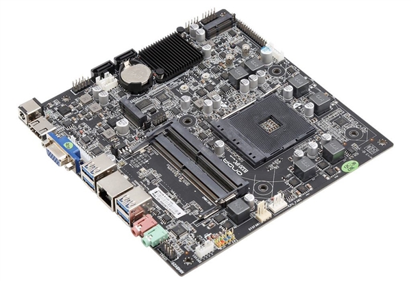 锐龙家族的生态真是越来越丰富了,最近在迷你机方面也是取得新突破:华擎发布了mini-STX规格的迷你机,精英展示了Mini-ITX规格的迷你机,现在昂达又推出了拿出了第一款Thin Mini-ITX规格的锐龙主板。 Thin Mini-ITX主板的长宽尺寸和Mini-ITX一样都是17×17厘米,但是限制了高度,不能有太大的散热器,不能有PCIe、DIMM插槽来安装独立显卡和桌面型内存,可以把主机做得极致轻薄。 昂达这块板子型号为“B320-IPC”,IPC的后缀意味着主要面向嵌入式领域,基于AMD A320芯片组,19V DC供电(就不需要24针供电接口了),支持的锐龙规格没说但65W的肯定没问题。 主板上有两条DDR4-2666 SO-DIMM笔记本型内存插槽,最大容量32GB,两个SATA和一个mSATA接口,M.2 Wi-Fi插槽,集成Realtek声卡和网卡。 背部接口有一个VGA、一个HDMI、四个USB 3.0(插针还可扩展四个)、耳机麦克两个音频口。 这里用的是锐龙3 2200G |