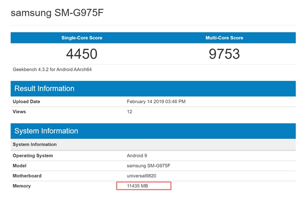 2月15日消息,三星Galaxy S10+现身GeekBench跑分网站,页面显示该机配备了12GB内存,运行Android 9系统,单核成绩为4450,多核成绩为9753。 根据之前披露的信息,三星Galaxy S10 +12GB内存版本将提供1TB存储,这是全球首款12GB+1TB旗舰。 据悉,三星Galaxy S10+采用了挖孔屏方案,其屏幕尺寸为6.3英寸,分辨率为3040×1440,屏幕纵横比为19:9。 核心配置上,三星Galaxy S10搭载Exynos 9820处理器(部分版本搭载高通骁龙855),前置1000万+800万双摄,后置1200万长焦镜头+1200万可变光圈镜头+1600万超广角镜头,电池容量为4100mAh。 此外,三星Galaxy S10+还将搭载超声波屏幕指纹技术,这是三星旗下首款屏幕指纹旗舰。 综上所述,Galaxy S10+是迄今为止最强悍的三星旗舰,超声波屏幕指纹、全新的全面屏形态、超强三摄相机、强悍的性能(Exynos 9820+12GB内存+1TB存储)都是当前安卓阵营的一流水准。 值得注意的是,本次发布会还将推出三星Galaxy S10、Galaxy S10E等机型。它们将在北京时间2月21日凌晨3点正式发布,我们拭目以待。 |