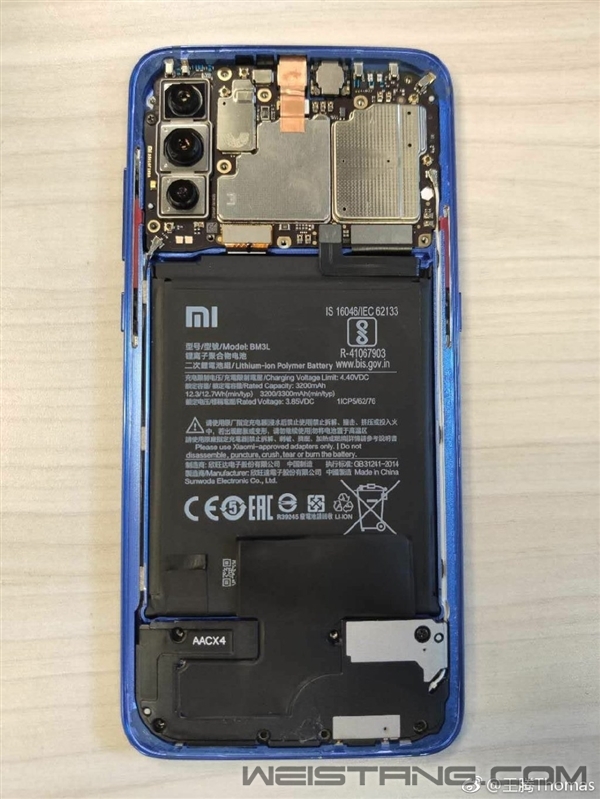 近日,小米在北京召开发布会,正式发布了其年度旗舰手机小米9。其代号“战斗天使”,号称好看又能打。 2月24日消息,小米公司产品总监王腾公开展示了小米9工程机的详细拆解图,接下来我们来通过这组图来一窥其机身结构设计,了解一下未能体现在外的小米9做工用料。 拆开后盖后,可以看到小米9的无线充电线圈和NFC,其中20w的无线充电线圈被王腾本人大赞“特别酷,一看就觉得很值钱!”。不过这硕大的无线充电圈也着实占据了机身内部相当大的空间。 接下来,其将无线充电线圈拆掉,便看到了电池。通过电池上所附的相关信息,我们了解到小米9的电池是由欣旺达制造。 这是单独拆解下的20w无线充电线圈和NFC元器件。 这里,已经将主板、电池、小板的中框取下。能看到全CNC的中框,上方中间可以看到散热凝胶,下方中间可以看到指纹识别模组,右边是一颗大尺寸Z轴线性马达。 这是小米9的主板背面,主要是射频和电源类器件。这里王腾称此部分器件其都做了P2i生活防水。公开资料显示P2i即表面涂上一层厚度以纳米计的聚合物,这层薄膜以分子形式附着在产品表面,密不可分。即使有液体流入到设备中,也不会对元件造成任何影响。 来看主板正面,是骁龙855+memory以及sim卡槽。 这里有三摄相机模组,可以看到4800万像素的主摄IMX586体积相当巨大。其像素尺寸0.8um,1/2''感光面积,FOV 79°,F/1.75光圈,6P镜头,支持4in1实现1200MP+1.6um大像素。 底部1217的扬声器,可以看到其体积很大,是此次小米9所升级的音质表现的保障。 这是全家福。 |