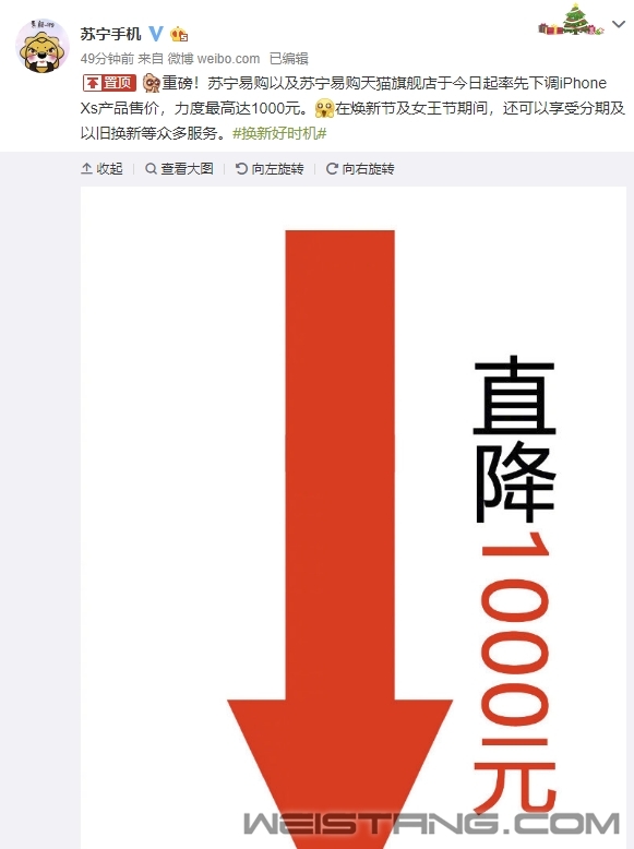 看完之后,我想说“再等等”! 3月5日,苏宁手机官方微博宣布,于今日对苏宁易购和苏宁易购天猫旗舰店的iPhone XS调价,最高降价1000元。 据悉,本次活动是配合“女王节”上线,所列产品于3月7日正式开售,目前仅可加入购物车。 经查,iPhone XS 64GB下单价7388元,256GB下单价8788元 ,512GB下单价10399元; iPhone XS Max 64GB下单价7988元,256GB下单价9288元,512GB下单价10799元。 虽然比官网便宜不少(苹果直营从不对产品主动降价),不过其实京东方面也有类似的优惠,只是64GB/256GB均比苏宁贵11元,512GB的XS贵200元,512GB的XS Max更是贵300元,看来如果想买512GB顶配的话,还是苏宁更划算,其它容量则可以根据对电商平台的喜好随意选择,差异不大。 |