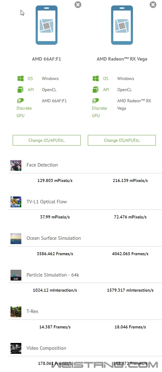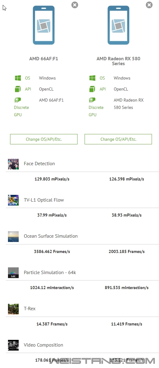 众多玩家一直期待AMD能快速拿出像Zen CPU一样优秀的全新高端GPU架构,打破NVIDIA目前对显卡市场的“垄断”,给整个行业和众多玩家带来更多实惠。 AMD也早早就确认了下代GPU架构核心“Navi”,采用新的7nm工艺制造,但具体细节一无所知,甚至定位高端和主流都始终没有定数。 现在,CompuBench数据库中出现了一款设备ID编号为“66AF:F1”的新款AMD GPU,从命名规则看和目前已知的型号都不同,极大概率就是Navi。 CompuBench检测识别该GPU拥有20个计算单元,如果延续每计算单元64个流处理器那就是1280个,只比RX 560多一点,但应该是检测有误,或者改变了架构设计(可能性小一些)。 从四个图形跑分看,相比于RX 580有两个项目提升30%,一个提升45%,一个提升2.5倍,估计实际提升幅度应该在40%上下。 计算性能方面,新GPU和RX 580几乎完全一样,看起来它确实是个重点关心游戏性能的GPU,对于挖矿也没再抱什么希望。 不过对比Vega 64,大部分计算性能只有一半,但少数对于图形和带宽敏感的项目已经比较接近,估计新GPU用了新的GDDR6显存,甚至有可能直接上HBM2显存(当然这个概率低一些)。 综合来看,如果这个新的GPU确实是Navi,那么它必然是基于Polaris北极星基础上的优化增强版,再辅以新的7nm工艺,虽然提升幅度喜人,但依然是面向主流游戏玩家,定位要明显低于Vega系列。 看起来指望AMD把老黄拉下马来,还需要继续慢慢等…… |