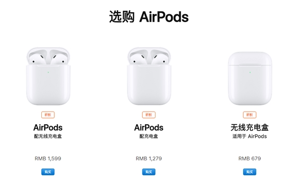 今晚(3月20日),苹果发布第二代AirPods无线耳机,同时推出无线充电盒。 国行方面,AirPods配无线充电盒价格为1599元(海外199美元),普通充电盒为1279元(海外159美元),无线充电盒单卖679元(海外79美元),已经发售,提供免费激光镌刻服务。 正如传言,第二代AirPods现在支持语音唤醒Siri(嘿,Siri),性能也所提升。 苹果介绍,第二代AirPods支持3小时、也就是比一代多出50%的通话时间(单次听歌续航仍为5小时、带盒续航仍为24小时);配备全新的Apple H1耳机芯片,可以更快、更稳定地配对,在关联设备间的切换最快达以往 2 倍,接打电话时的连接最快达以往 1.5 倍。此外,H1 芯片可将游戏时的延迟最多降低30%。 无线充电盒方面,支持兼容Qi标准的充电器,当然,也支持闪电接口充电。 耳机本体和上一代基本一致,不过充电盒的外面新增一颗LED电量指示灯。 |