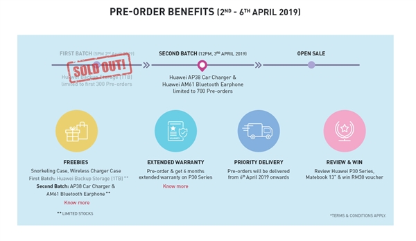 3月26日法国巴黎全球首发后,华为P30系列随即登陆多个国家和地区市场。4月11日,华为将在上海举办P30系列国行发布会,届时P30、P30 Pro将正式登陆国内市场,如今最大的悬念就只剩售价了。 日前,华为P30系列在马来西亚开启预售(4月2日-6日),首批已经售罄,目前已经进行到第二批。由于亚太地区华为定价相差不大,所以马来西亚的预售价应该和国行基本接近。