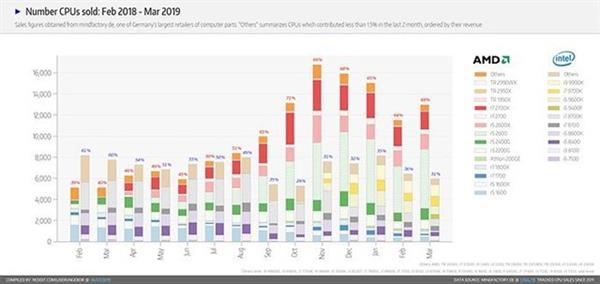 自AMD推出Ryzen锐龙系列处理器以来,网友的呼声一直很高,被酷睿压制多年的现状终于逐步呈现了逆转的趋势。就在刚刚过去的三月份,国外玩家统计了欧洲电商平台Mindfactory处理器销量,锐龙在该地区实现了两倍于酷睿的销量,实现大逆转。 虽然这份数据并非官方公布,而且也不能代表全球的出货量,但是从一定程度上可以看到玩家们近期对于AMD的呼声更高一些。 回望多年前AMD被网友戏谑一颗酷睿i3“默秒全”的尴尬境地,AMD终于凭借Ryzen锐龙实现了“扬眉吐气”。 根据这份来自民间的数据报告显示,自去年九月份AMD处理器的销量便已经达到两倍于英特尔的水平,之后AMD在销量上的优势一直保持到现在。AMD阵营热销的处理器主要是R7 2700X、R5 2600X、R5 2600、R5 2400G等。 对于AMD和英特尔在欧洲市场为何会出现如此之大的销量差距,笔者猜想这跟欧美发达国家消费者比较务实的消费观念有关。尤其是对于汽车、手机、电脑而言,这些国家的消费者往往将这些产品视为消费品,便宜够用足以了。 从曾经的“默秒全”,到如今的销量开始反超,AMD凭借锐龙系列处理器仿佛回到了那个辉煌的速龙64时代。截至2018年第四季度,AMD台式机市场份额稳步增长3.8%。这种增长很大程度上要归功于AMD在DIY PC市场上的增长。 由于AMD锐龙系列处理器的大获成功,人们对于年内即将发售的7nm制程工艺的第三代锐龙系列处理器报以了更为殷切的期待。甚至有些人认为,随着7nm锐龙系列处理器的上市,会再现当年速龙压倒奔腾的巅峰辉煌,从而实现全面的翻盘。 然而摆在AMD面前的路却并不平坦! AMD首先需要面对的,是来自老对手英特尔10nm新制程的压力。或许AMD能够获得暂时部分领域的领先,但想要实现全面翻盘其实还存在着诸多的挑战。毕竟其最大的竞争对手,是几乎统治了这个世界PC芯片领域的霸主——英特尔! |
