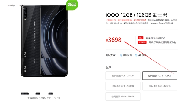 4月22日消息,iQOO新配色武士黑将于明天上午10点正式开卖,售价3698元(12GB+128GB,这是迄今为止价格最低的12GB内存+骁龙855旗舰)。 官方介绍,iQOO武士黑融合了深邃的炭纤维纹理于3D玻璃后盖,同时在LED灯带上设计有代表性的“Monster inside”字符,颜值不凡。 该机同样搭载了高通骁龙855旗舰平台,配备12GB内存+128GB存储,电池容量达到了4000mAh,支持44W超级快充。 官方介绍,iQOO 4000mAh大电池与44W超级快充堪称“黄金搭档”。在vivo实验室大数据统计模拟的用户真实场景测试中,4000mAh可以获得平均13.5小时的续航时长,而44W超快闪充可以在15分钟内将iQOO电量充至50%,45分钟可以充满整部手机。 此外,iQOO搭载由万级导热系数热管、可固化导热凝胶、高导热铝合金框架、多层复合石墨散热膜共同组成的多层散热结构,实现更佳温升控制。官方称长时间游戏、边充电边玩等发热场景下高效散热,让手机性能发挥得更淋漓尽致。 |