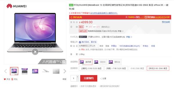 PC市场式微多年,也一直严重缺乏创新,比如笔记本就一直是老样子,每代新品也就升级下配置、调整下外观。 如今随着华为、小米两大手机品牌杀入传统笔记本市场,尤其是华为的MateBook和旗下荣耀MagicBook系列,瞬间掀起了一场革命,从外观到配置再到价格都焕然一新。 近日,华为又重点打造了基于新款Intel八代酷睿i3处理器的MateBook 13,一经推出就好评如潮,妥妥的又一个爆品的节奏。 新版酷睿i3 MateBook 13目前已经进入预售的冲刺阶段,将在30日凌晨零点正式发售。至截稿之时,预约人数已经超过1.5万,这些用户也可以专享首发优惠400元、到手价3999元的福利。 新款华为MateBook 13笔记本的最大亮点,莫过于搭载了Intel最新的第八代低压低功耗酷睿i3-8145U,基于成熟的14nm工艺,双核心四线程,基准频率2.1GHz,睿频加速技术2.0加持下全核最高频率3.7GHz,单核最高频率则可达3.9GHz,同时集成4MB三级缓存。 与第七代的酷睿i3-7100U处理器相比,新款酷睿i3-8145U的整体系统性能可以最高提升40%。 华为更是在内部设计了两个鲨鱼鳍风扇2.0,转速可达8000转/分钟以上,风量提升25%,并有软件层面的智能滤波技术,七颗温度传感器监控整机温度,更好地释放酷睿i3-8145U的性能潜力,同时办公影音场景噪音可降低3分贝。 伴随酷睿i3-8145U而来的还有最新的Intel Wireless-AC 9560 Wi-Fi千兆无线解决方案,支持双天线、160M频宽,最大理论吞吐量1733Mbps。 同时搭配蓝牙5.0,相同功率下可提供四倍于蓝牙4.2低功耗版的覆盖范围,两倍的传输速度。 |