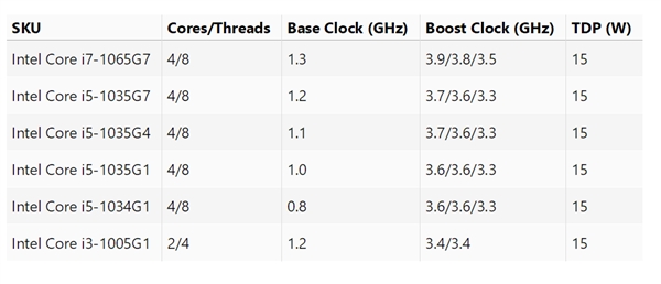 由于种种原因,Intel处理器如今的产品显得相当复杂,而且变数非常大。按照规划,Intel将在今年底最终拿出10nm工艺产品,首发代号Ice Lake(冰湖),但是它至少初期仅限笔记本领域,桌面上还是要继续仰仗14nm。 而早在去年11月份就有曝料提到,Intel再下一代产品的代号为“Comet Lake”(彗星湖),还是14nm工艺,但是面向主流桌面的Comet Lake-S系列会带来10核心20线程,预计归入十代酷睿序列。 现在,Comet Lake-G系列、Comet Lake-U系列首次曝光,都是热设计功耗15W的低压移动版本,看样子确实属于十代酷睿,因为数字编号都是10xxx系列,第一次升级到五位数。 U系列我们见的多了,针对轻薄本设计,比如现有的Whiskey Lake-U,包括i7-8565U/i5-8265U/i3-8145U等等。 Comet Lake-U包含五款型号,其中最高端的i7-10710U来到了6核心12线程,不过为了控制功耗基准频率降低到区区1.1GHz,睿频加速六核3.8GHz、四核4.1GHz、双/单核4.6GHz。 i7-10510U、i5-10210U均为4核心8线程,基准频率1.8GHz、1.6GHz,最高加速4.9GHz、4.2GHz。 i3-10110U则是2核心4线程,频率范围2.1-4.1GHz,反而不算很高,但应该能在更高频率下持续运行更长时间。 它们都会支持DDR4-2666、LPDDR3-2133内存,并支持AVX2指令集。 G系列之前只见过Kaby Lake-G,集成了AMD Vega GPU,但这次的Comet Lake-G似乎不是AMD GPU,或许是全新的Intel核芯显卡。 Comet Lake-G包含至少六款型号,其中i7、i5系列都是4核心8线程,i3系列则是2核心4线程。 旗舰型号是i7-1065G7,基准频率1.3GHz,睿频加速3.5-3.9GHz。 i5系列型号最多有四款,分别是i5-1035G7、i5-1035G4、i5-1035G1、i5-1034G1,基准频率低得可怜只有1.2-0.8GHz,最高加速3.7-3.6GHz。 i3-1005G1尽管是双核,但是频率依然不高,基准仅1.2GHz,加速也不过3.4GHz。 G系列内存支持DDR4-3200、LPDDR4-3733,并支持AVX-512指令集。 从目前的情况看,Comet Lake-G/U系列的规格和定位颇有些神秘,比如工艺就不好判断是14nm还是10nm。 虽然之前有泄露路线图显示桌面上的Comet Lake-S还是14nm,但是在15W热设计功耗的产品线上,目前的Whikey Lake-U属于八代酷睿,接下来的10nm Ice Lake-U几乎必然是九代酷睿,按理说再往后肯定还得是10nm,而且要在15W热设计功耗的限制下集成6个核心,14nm的难度可想而知。 难道,Comet Lake在桌面上和笔记本上有两种不同工艺? G系列和U系列的定位有何不同也不太好说,U系列有更多核心,G系列则有神秘新GPU,以及更高的内存和AVX指令集。或许是为全新的Project Athena笔记本准备的? |