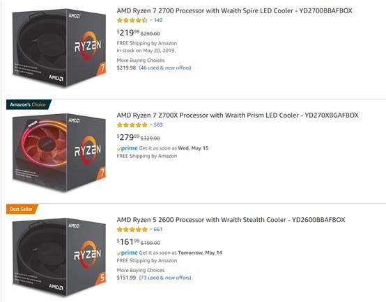 5月27日的台北电脑展上,AMD公司CEO苏姿丰将首次以开幕式主题演讲嘉宾的形式举行发布会,官网对外进行视频直播,预计会正式发布7nm工艺的锐龙3000系列处理器。 既然新处理器就要来了,现有的二代锐龙处理器降价不可避免,美亚、沃尔玛等平台的锐龙7/5处理器价格下调了四分之一左右,并且购买锐龙处理器还会赠送《全境封锁2》、《世界大战Z》两款游戏。 AMD的7nm锐龙3000系列处理器预计首先会覆盖高端产品线,所以二代锐龙降价的主力也是锐龙7、锐龙5中高端产品线,目前已经在美国亚马逊、沃尔玛等商城调价了,其中锐龙7 2700X通常售价为329美元,现在售价280美元,降幅15%。 此外,锐龙7 2700价格从299美元降至228美元,降幅25%左右,锐龙5 2600X也从229美元降至175美元,降幅同样是25%左右,锐龙5 2600处理器也从199美元降至164美元,降幅20%左右。 锐龙APU中的锐龙5 2400G也从169美元降至120美元,降幅约为30%。 除了降价之外,AMD还在Micro Center、百思买、新蛋、沃尔玛、亚马逊等平台有促销捆绑活动,这是AMD 50周年庆典的一部分,购买AMD CPU就可以获得《全境封锁2》、《世界大战Z》两款游戏,价值不菲,简直是买游戏送CPU了。 |