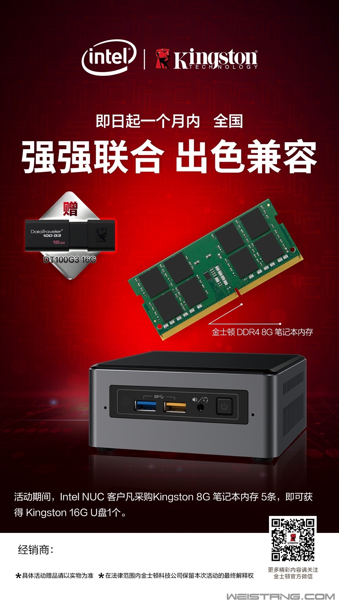 英特尔在几年前已经有了MINI小型机的原型,而随着集成化越来越高,小型机的性能也越来越强,终于英特尔NUC火力全开,成为市场上最炙手可热的MINI准系统。 NUC是Next Unit of Computing的缩写,可理解为新型计算机结构或者MINI准系统。早年间的准系统可以理解为拥有只有主板+机箱+电源的主机,需要用户添加处理器、内存、硬盘、显卡,才能构成一套完整的主机;后来,处理器被集成在主板上,显卡被集成在处理器中,或者也被集成在主板上;今天,在原有的基础上做的更MINI,更袖珍,但是性能更强大,这就是英特尔NUC。 万事俱备 只欠内存硬盘 相比以前的准系统,英特尔NUC更懂消费者。对于升级而言,消费者往往倾向添加配件进行升级,而不是置换配件进行升级,于是,内存、硬盘成为最好的添加配件升级方案。毕竟如果想把手中的双核处理器换成四核处理器,就意味着双核处理器没有任何价值;而如果把内存从8GB升级到16GB,只需要再添加一条内存,老配件还可以继续使用,硬盘也是如此。 英特尔NUC看似只需要添加内存硬盘即可,但是这其中还是需要注意一点,那就是内存的兼容性。内存如果不兼容,不一定体现在不能开机,也许会在使用中突然蓝屏、无规律死机等等。特别是不同品牌,不同规格,不同颗粒的内存混合使用,不兼容的问题更为明显。 如果怕内存不兼容,也有解决方案,一次性升级到位,选择同品牌、同规格、同颗粒的内存,不兼容性会大大降低,这个方案唯一美中不足就是前期需要花费更多资金;再或者,选择兼容性出色的高性价比金士顿KVR笔记本内存。 强强联合 无惧兼容性的高性价比内存 金士顿KVR笔记本内存恐怕是最适合英特尔NUC系统的内存,主要原因有两点: 其一,金士顿KVR系列笔记本内存拥有绝佳的兼容性。经过各大主机板的兼容测试,兼容性强、稳定性高,在提供优越的内存质量的同时兼顾系统长时间运行的稳定性。之所有有如此出色的兼容性,得益于金士顿精选高品质DRAM芯片,并在生产过程中经过严苛测试,确保可靠稳定,也成就了金士顿三十多年来值得信赖的出色品质。 其二,金士顿KVR系列笔记本内存拥有极佳的性价比。以京东商城为例,同样规格的内存,价格竟然差了将近1倍,精明的消费者一定知道选什么! 活动走一波 买金士顿内存送金士顿U盘 即日起一个月内,中国大陆范围内的英特尔NUC用户购买 5条 金士顿 ValueRAM DDR4 8GB 笔记本内存,即可获赠 1个 金士顿 DT 100G3 16GB U盘。详情请咨询金士顿区域销售王经理,电话:186-0029-8800。 目前,活动已经在全国范围内展开,英特尔与金士顿的强强联合,不仅提供消费者强大效能,更带来系统的稳定性。并为日后升级提供了强有力的保证(英特尔NUC支持双通道SODIMMs 1.2V,笔记本DDR4-2400内存),可现在购买单条8GB内存,日后再升级8GB内存组成16GB高速双通道,不仅极大缓解当下资金压力,还确保未来内存的兼容性。活动时间仅1个月,抓紧时间行动吧! 欲了解更多金士顿产品信息,请浏览金士顿中国官方网站:http://www.kingston.com/cn 欢迎关注金士顿官方微博(http://weibo.com/kingston1987)与微信公众平台(微信号:Kingston1987),参加最新活动,交流产品心得。 |
