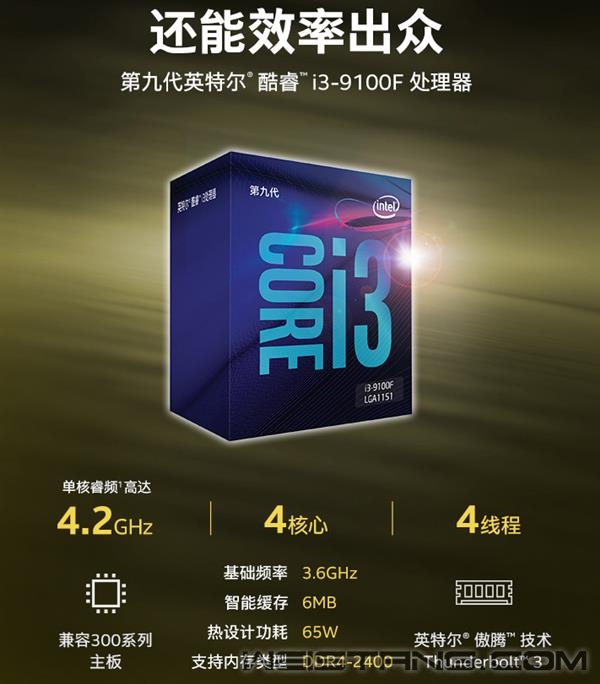 今年初的CES展会上,Intel推出了更多无核显的九代酷睿F系列处理器,从最高端的酷睿i9-9900KF到低端的酷睿i3都有,其中酷睿i5-9400F这样的处理器已经成为千元级的首选产品了。 低端的酷睿i3 F系列原本是规划的酷睿i3-8100F,这也是唯一一款不属于酷睿I 9000系列的CPU,4核4线程,基础频率3.6GHz,65W TDP,跟酷睿i3-8100处理器是一样的。 不过Intel日前上市的处理器是酷睿i3-9100F,这款处理器要比预期中的酷睿i3-8100F好得多了,4核4线程,6MB缓存,基础频率3.6GHz,但加速频率提升到了4.2GHz,支持DDR4-2400内存。 酷睿i3-9100F处理器售价只有799元,这个价位下4核4线程还有4.2GHz的频率,用于一般家庭应用是足够了,玩游戏的话4.2GHz频率也不至于拖后腿,预计会是千元内最值得考虑的处理器之一。 酷睿i3-9100F处理器购买地址:https://item.jd.com/100003372319.html |