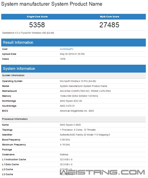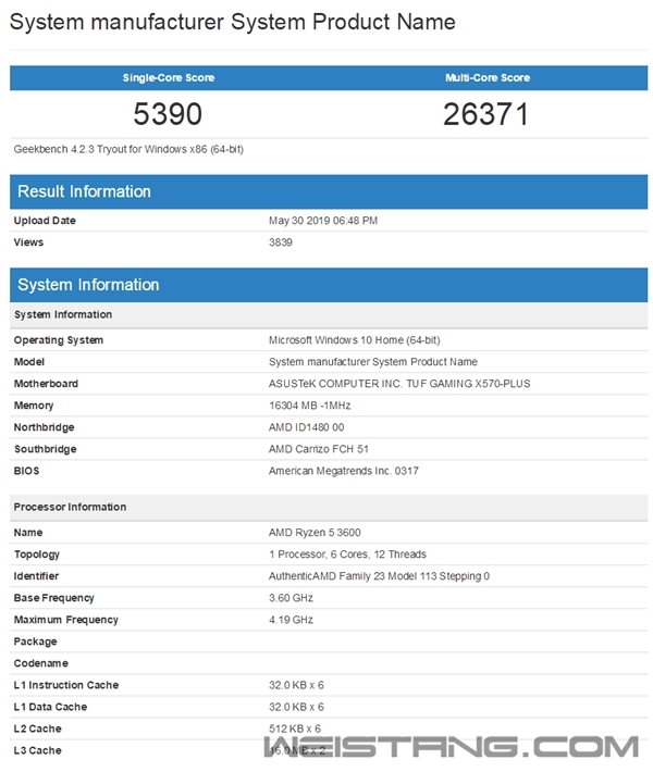 AMD宣布的7nm Zen2第三代锐龙3000系列在纸面上看起来很好很强大,实际性能则要等到7月7日上市后见分晓,不过从已经曝光的跑分中足可见一斑了。 Geekbench、UserBenchmark都已经出现了锐龙5 3600的性能成绩,这是目前已公布的最低端型号,6核心12线程,频率3.6-4.2GHz,二三级缓存35MB,热设计功耗65W,价格仅1599元。 搭配X570主板,锐龙5 3600跑出了单核心5390、多核心26371的成绩,搭配X470则是单核心5358、多核心27485,相差无几,属于正常波动。 相比于同样6核心12线程、3.4-3.7GHz的二代锐龙5 2600,这样的成绩提高了足有15%,同时相比一代旗舰八核心锐龙7 1800X则分别高了23%、13%左右。 对比竞品,单核心成绩已经完全持平酷睿i7-8700K,多线程则领先接近10%,相比于九代酷睿i7-9700K也并不逊色多少,再考虑到价格只要它们的一半左右,性价比简直是碾压级别的,延续了x600序列产品的一贯爆品体质。 UserBenchmark大家可能比较陌生,但却可以更好地展示IPC架构性能提升。锐龙5 3600 4.05GHz频率下得分134,酷睿i7-7700K 5.1GHz频率下得分157,同频性能前者领先约7%。 虽然i7-7700K属于七代酷睿,但是考虑到八九代酷睿的架构并无明显变化,这么看来的话Zen2架构的IPC性能已经丝毫不逊色于最新酷睿,甚至可能还要好那么一丢丢。 |