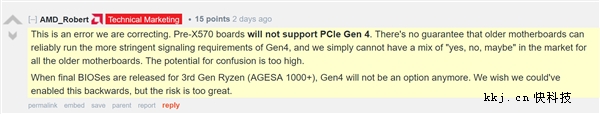 PCIe 4.0规范的消费级产品总算在今年的台北电脑展出现不少,主要包括处理器、主板、SSD等,当然,他们多与AMD第三代锐龙产品线有关。 毋庸置疑,三代锐龙的御用座驾X570主板是PCIe 4.0的首选平台。不过,在此次台北电脑展前,技嘉还悄悄发布了BIOS更新F40,为X470 Aorus Gaming Wi-Fi 7等主板解锁了PCIe 4.0插槽。 从理论上说,AM4接口的主板只要设计合理,距离CPU最近的那条直连PCIe长插槽就可以改造为Gen4,从而使得传输速度翻番到64GB/s。但在Reddit与网友交流时,AMD严正否认上述操作,称不想带来混乱和风险。 图为技嘉X470升级F40 BIOS后解锁PCIe Gen 4通道 AMD表示,在适配三代锐龙的新BIOS(AGESA 1000+)发布后,基于老主板的PCIe Gen 4选项将变得不可用,他们不想让老主板用户们被“能、不能、可能”困惑,换言之,X570之前的芯片组将只能停留在PCIe 3.0。