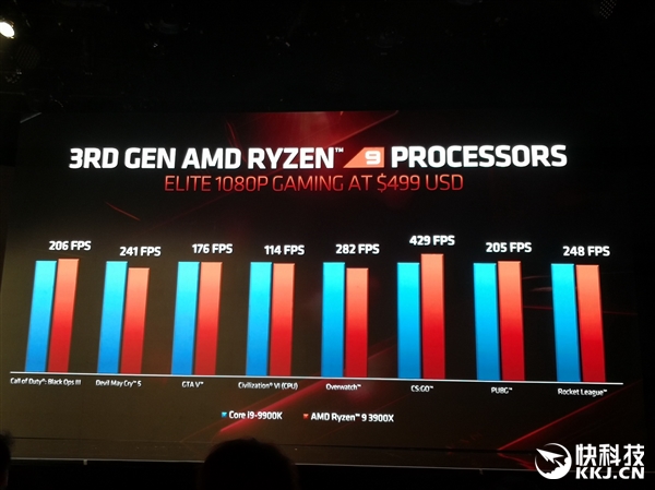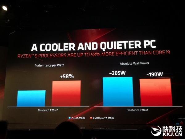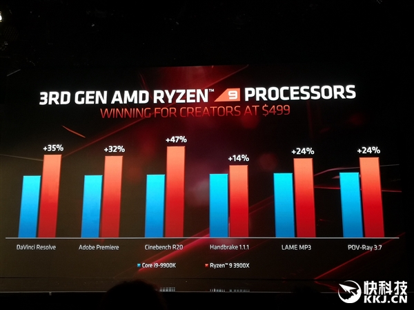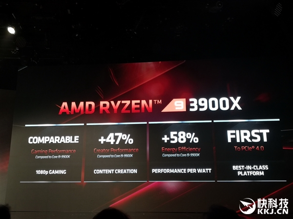 AMD第三代锐龙台式机处理器来了,阵容强大,从低端的6核心12线程锐龙5 3600到高端的12核心24线程锐龙9 3900X再到顶级的16核心32线程锐龙9 3950X,规格上已经完全压制Intel第九代酷睿,后者最多才8核心16线程,工艺上更是面临14nm VS. 7nm的代差。 三代锐龙的确切性能,要到7月7日上市后才能有具体的评测数据,这里我们不妨先来看看AMD官方给出的数据,对比下来真的让Intel很难受。 16核心的锐龙9 3950X要到9月份才会第二批上市,暂时也没有具体性能数据,我们就从12核心的锐龙9 3900X开始,还有8核心16线程的锐龙7 3800X/3700X,6核心12线程的锐龙5 3600X/3600。 之前两代,AMD总是强调自己的多核心多线程优势,而到了第三代,锐龙的单核心单线程劣势终于不复存在。 即便是目前最低端的锐龙5 3600,对比上代旗舰锐龙7 2700X,在基础和加速频率都低100MHz的情况下,CineBench R20单核心得分反而还要高大约9%,到了锐龙9 3900X更是可以领先多达21%。 锐龙9 3900X的对手是酷睿i9-9900K,二者价格都是499美元。 AMD宣称,锐龙9 3900X在游戏性能上与酷睿i9-9900K基本持平、不分上下,但是凭借更多核心线程与足够高的频率,从渲染到计算等日常、办公、娱乐应用性能比对手可高出少则14%、低则47%。 单说CineBench R20多线程性能的话,锐龙9 3900X的每瓦性能也就是能效可领先58%,因为跑分超出47%,功耗也低7%。 你可能会问:玩游戏需要12核心吗?如果只是玩游戏当然不需要,但很多玩家玩游戏的同时,还会录制、直播或者同时执行其他任务,这时候更多核心的优势就体现出来,比如一边游戏一边以高码率直播,锐龙9 3900X能保证让观众看到59FPS这样的流畅帧率,i9-9900K则还不到2FPS,直接卡成幻灯片。 锐龙9 3800X的对手是酷睿i7-9700K,价格399美元对385美元,游戏性能相当,应用性能领先9-37%,功耗虽然略高9W,但是能效仍能超出最多30%。 |