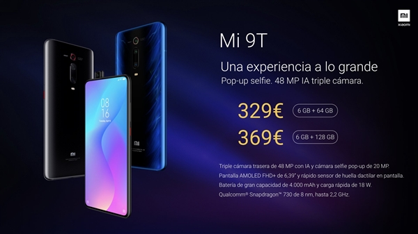 6月13日消息,小米9T在欧洲正式发布。 价格方面,6GB+64GB版售价329欧元(约合人民币2600元),6GB+128GB版售价369欧元(约合人民币2900元)。 小米9T采用了6.39英寸无刘海全面屏,分辨率为2340×1080,这是2019年小米系列首款无刘海、无水滴机型。前置摄像头采用升降式方案,是小米系列首款采用该方案的机型。 核心配置上,小米9T搭载高通骁龙730移动平台,前置2000万像素,后置索尼4800万广角+800万长焦+1300万超广角三摄,电池容量为4000mAh,支持屏幕指纹识别。 此外,小米9T保留了3.5mm耳机孔,同时支持NFC。 值得注意的是,本次发布会小米还推出了小米手环4,售价是34.99欧元(约合人民币270元)。 |