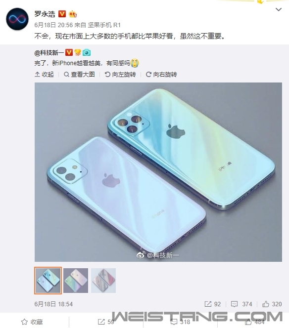 从目前曝光的情况来看,iPhone 11几乎可以肯定将会采用“浴霸三摄”的后置摄像头方案。当然,和华为Mate 20系列的方案有所不同,iPhone 11的三摄排列呈三角形,后置镜头模块设计在机身左上角,机身背部中央位置依然留给了苹果Logo。 尽管如此设计饱受争议,但渲染图出来之后,依然有人觉得很好看。日前,有微博数码博主在微博上晒图称:“完了,新iPhone越看越美,有同感吗?” 一向对于库克时代iPhone设计嗤之以鼻的罗永浩再次表达了自己的观点:“不会,现在市面上大多数的手机都比苹果好看,虽然这不重要。” 言外之意,尽管老罗对iPhone的设计看不上,但iPhone依然不愁卖。 不过,按照以往的惊艳来看,只要今年苹果定价不是太夸张,依然有大批人买单,毕竟发布前“真丑”,发布后“真香”已经不是第一次了。 另外,今年iPhone XR2也会由单摄提升为双摄,尽管家族式的后置镜头看起来难言和谐,但不可否认,这依然会是今年苹果最走量的产品。 从此前曝光的美国第一大运营商Verizon的市场营销日程表来看,iPhone 11将定在见你9月下旬发布,预计9月底上市。 |