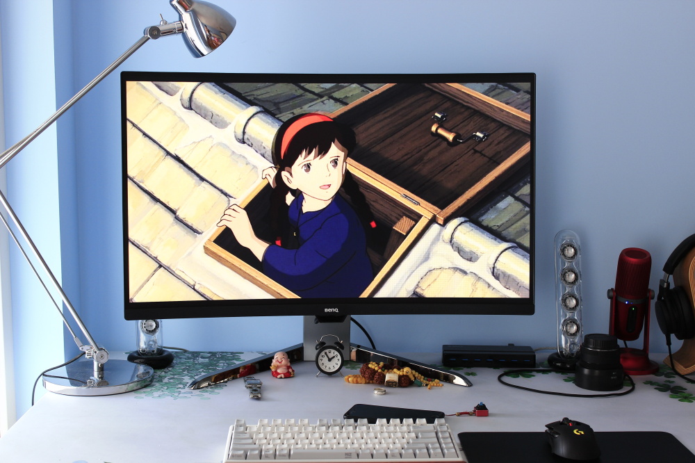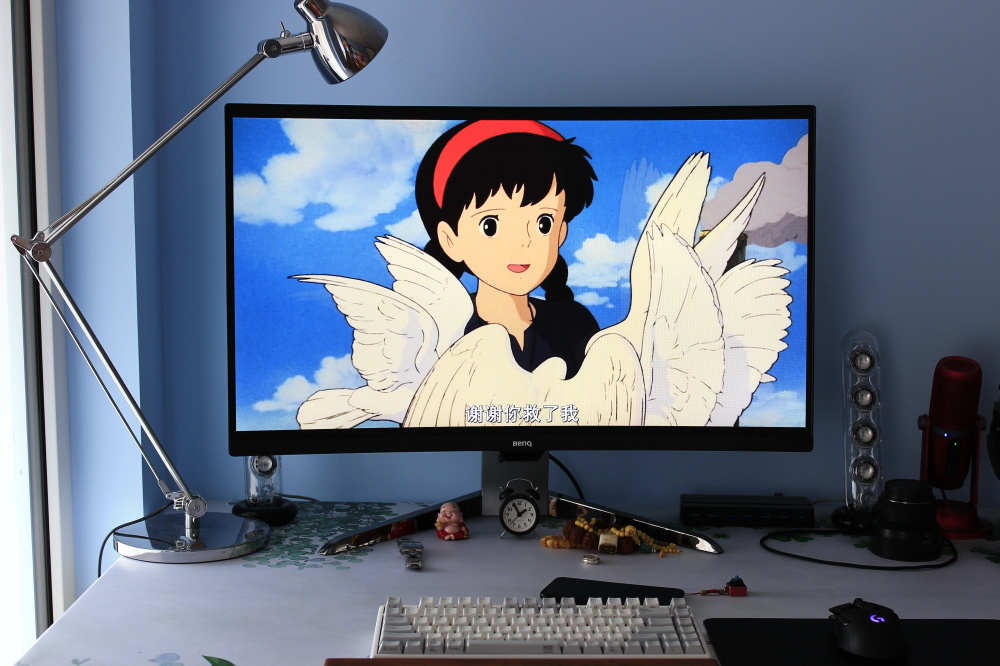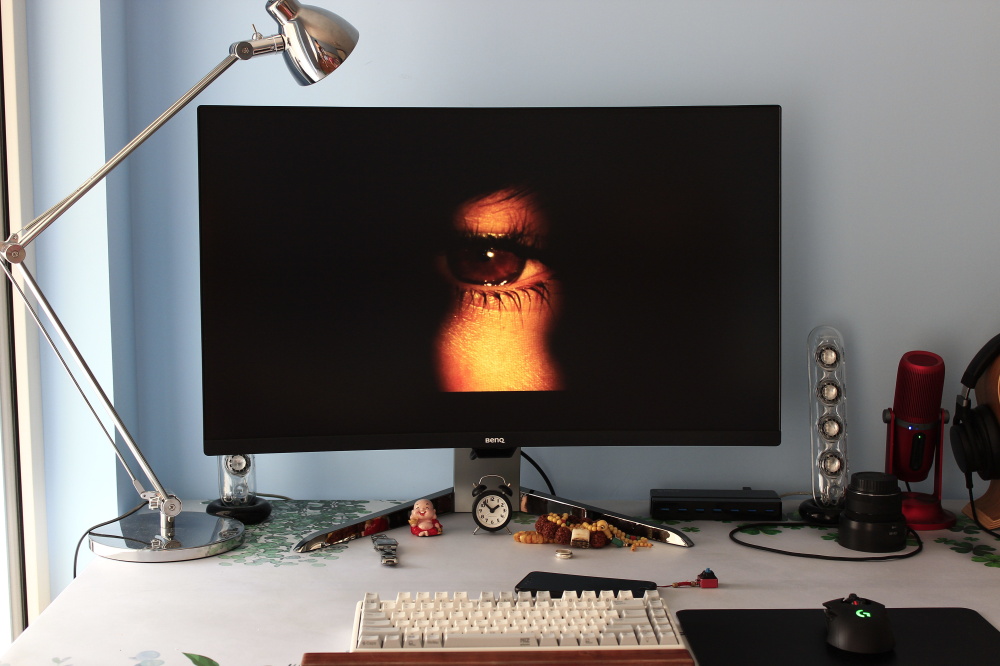 每次看人家介绍个产品啊,写个评测啊啥的,开篇都是一大堆介绍,咱也不知道为啥,咱也不敢问。买了就是买了嘛,喜欢才买的啊。然后就分享一下啊,觉得好才分享的嘛~ 明基EX3203R,32寸曲屏显示器,我就觉得挺好的,哈哈哈哈~~~要是硬说哪里好吧,我也说不出那么那么专业,毕竟不是什么专业人员,所以下面我就以一个最普通的消费者和大家说说这个32寸的曲屏显示器到底咋样。 首先就是,这货实在太大了。因为我到现在对显示器或是电视的大小都没有一个明确的概念,所以收货的时候确实有点意外。很多朋友可能看到我之前和大家分享的那款同样是明基的PD2700U 4K,那为什么这次要选一个2K呢?其实原因没有什么特别的,就是很简单的想法------体验下曲屏到底有多刺激!后来发现我没选错。 包装外面可以看到这款显示器的曲率是1800R,什么概念呢?曲率指的是曲线上某个点的切线方向角对弧长的转动率,也就是弯曲屏幕的半径数值。有点绕是吧。简单理解就是曲率1800R指的是半径为1.8m的圆所弯曲的程度。1000R就是 1米。总之曲率越小,弯曲越大。 打开之后差不多就这样了,因为装箱的时候这个下面的支架就已经安上了,所以我们不用在费事的安装一遍,只需要抬的时候注点意就好。 这个角度更容易体会到曲面的弧度。 背面的logo上面印着明基曲屏显示器的字样。那个圆环可以说是明基的固定设计了,走线用的。 后面的连接处只要稍微用些力就能扣开,如果想换支架挂到墙上的话需要买一个明基的转换支架配件。从这个角度来看也能看到,显示器是不支持左右转动调节的。 不过倒是支持25°左右的仰角和差不多6cm的高度调节。 所有的接口包括HDMI*2,DP*1,USB3.0*2,TYPE-C*1。在我分享PD2700U的时候大家就有吐槽那个显示器没有type-c接口的,不知道这个有接口的这些人又会吐槽什么。。。但是这个接口我是真心用不到。这里就不得不提一个事了,因为EX3203R的刷新率是144Hz,所以想达到这个刷新率就只能用DP线,貌似是这样,反正HDMI是不行,至于type-c行不行我不知道,哪位了解还希望告诉我一下。 接下来就要说那个尴尬的事了,这显示器配套的DP是DP-mini,可以显示器上也没有miniDP的接口啊!!!为了144Hz的刷新率我还得再买一个DP线。。。。。。后面再说为啥费用144Hz。 虽然这个也算是爱眼显示器,但是和之前的PD2700U的护眼方式有所不同。不过前面那个logo下方的那个地方也是负责接收外界传来的光线的。显示器的按键的分配有一点要说,正面数第二个按键是负责转换输入的,但是既然显示器能够自动识别输入信号,再弄个这个我觉得就有点多余了,更重要的是,想调节其他功能的时候总按错,因为自定义调节的三个按键就只能是正面左数3(1)、4(2)、5(3),要是一下按错了就黑屏了。。。。。。就这点不是特别好。 终于开机了,这震撼!用这么大的显示器一定一定要离远点,也就是桌子一定刚要大,要不再好的护眼功能也白扯! EX3203R的预设图像模式有5个,标准,HDR,电源HDR,SRGB和图片。最佳分辨率为2560*1440 。HDR功能的作用是提升图像“单一画面明暗亮度相差较大部位的细节展现能力”。也就是说亮的地方更亮,暗的地方更暗。但是有些时候这并不是最好的。所以这里就要提到明基的一个BI+技术。它可以根据光线的强弱自动调整显示器的效果,可以做到亮出更柔和,暗处依然保持没完呈现的效果。 明基通过独家的内部运算技术,可以自动调整画面的强度,使眼睛可以看到相同的画面亮度和清晰的细节。这个就和PD2700U的那个智慧护眼的功能差不多我这么理解。但多少还有点不一样。 DCI-P3色域,让显示器的色彩范围更加“广”!这个标准是高于REC.709,可以拥有更多红色和绿色的范围,是数字影院的一种色彩标准。上图左侧为EX3200R,右侧为PD2700U,色彩差别多少有一点,但是很小很小。因为我没有专业的仪器来测量,所以只凭肉眼来做分享。[attach]164073[/attach]Freesync2,Freesync技术能够让显示器与显卡的显示效果同步,减少撕裂感。而Freesync2作为Freesync的升级,还有着增强HDR效果和降低延迟的功能。更要提的就是EX3200R是一款144Hz的显示器,这个刷新率和Freesync2加持再加上HDR+BI+的技术,让这款显示器在玩FPS游戏时简直就是天堂一般的存在! 组双屏真的是太方便太方便了!但是这样看起来160cm的桌子就显得太拥挤了,所以我觉得配一个显示器支架还是非常必要的。 不仅游戏,这么大的显示器要是不看看电影我真觉得浪费! 影院HDR比HDR模式略微降低的亮度,我猜是想保证长时间观看不伤眼睛的缘故。不得不说,明基显示器在爱眼护眼方面还真是做得够全面的!