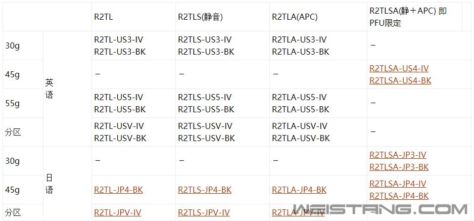 直到17年。。。 FC660C到了我手中 ![]() 才真正了解静电容开关的手感 ![]() Topre开关的静电容键盘那打字感觉真是。。。 ![]() ![]() 对于660C这款经典的静电容就不多做介绍了 毕竟今天的猪脚是REALFORCE R2 PFU哦 这岂能忍住不剁手啊 其实我想剁手REALFORCE自家键盘很久了 不过这一切还得怪大胖鸟这家伙 写了篇什么半价拿到87U的REALFORCE !! 看的我好眼馋 好东西都去他那儿了 (更新一下 最近又来了一篇叫啥不小心碰倒了乌龙茶!Realforce 87U拆解以及进水处理!) 这不摆明了不停的撩动着玩家购买的欲望啊 且REALFORCE的好价 不是想有就有的 自己去闲鱼转了半天没见到第二个像大胖鸟说的那么实诚地抛售87U 的MM 奸商 二手贩子 抠脚大汉 倒是一大堆。。。 算了自己没有这种捡便宜的命 丰衣足食靠自己 就看中 PFU Limited Edition这款了 也满足了之前错过 HHKB的心愿 都有同样的血脉啊 ![]() 这不618 来了啊 我们的猪脚 ![]() 全新的产品总有一股特别的味道 和咸鱼来的就是不一样啊 ![]() 来和前任静电容键盘来个合影 FC660C有个特色就是键盘上的那个电容公式 来个特写 ![]() 不好意思图片都是手机拍的 还是没照好 配件也就是二颗增补键帽 一个拔键器 二张静电键帽用的吸音棉 ![]() 日亚上单独这一套静音棉和拔键器也有得卖 只是R家增补基本上没有见到 可以明显看到108全键盘和66 差了一大截 对了 为啥选的全键位呢,因为价格差10元 那肯定选多些键的喽 还有 就是我用的超宽屏幕 桌子 够长呗 哈哈 其实数字键盘还是很有必要的,还有就是能放得下肯定选全键位的 ![]() 这象牙白算是比较经典的一种配色了,在选色时我也纠结了许久。关键还是怕脏 不过现在好了 我已经患上开机打字前洗手的毛病了。 接下是上桌定妆照 简单的加了个滤镜 哈哈 ![]() 再来个角度可以看到 REALFORCE键盘右上方的铭牌 不是贴纸噢 是做成一块亚克力的标志了 ![]() 对于键帽我是不太纠结的 也不愿意花太多时间去另外买一套键帽 许多键友烧一套键帽就相当于一个键盘的价格了 我实际使用660C中 Fn键 在光线暗时我经常会按错 现在看到正好有白色的 我决定二个按键替换一下 顺便把原先Leopold的方向键也给R2 这样和替换上的Fn也搭配 ![]() ![]() ![]() ![]() 紫色的底座表示静音的 顺便多拆几个大家看看,明显可以看到L的键帽字体较小,方向键也对比一下换掉。 简简单单 这样以后Fn就明显多了 660C按快捷的时候 瞄一下就方便多了,108键盘的Fn本身就用的少和灰色的方向箭头就当配色装饰吧 ![]() ![]() ![]() 以后就是 660C继续装在包里和适合随身携带,R2就作为主力在家服役了啊 一起来再合个影 。 ![]() 好开箱结束 本人都是手机拍摄 技术较渣 看官们请多见谅 况且论坛里都是高手 这键盘也有很多评测 拍了许多靓照了 我就不献丑了 还是多写一些干货吧 最后吐槽下大家期待已久的蓝牙功能和众望所归的键线分离 估计得等到R3后下一代才会出现吧 接下来对REALFORCE新款型号的命名做个简单的介绍 一般键盘包装上型号都是有三部分的字符组成 如图我的外包装上R2SA-US4-IV ![]() R2=第2代静电容 没有写R2的就是第1代静电容 R2接下来后面的字母还有TL TL=テンキーレス 无数字键盘 简单些说R2后有TL字母的就表示87键不带数字键盘的 没有TL的话就是有数字键盘的104/108键 R2 后的 S= silent 静音 A= APC 功能 (Actuation Point Changer 触发键程) 我选的是带数字键盘的有静音和APC的 那就是 R2SA 同理 如果是87键的就是R2TLSA 接下来US就是美式布局 如果是岛国带回来的就是JP日语排列 在语言后面的一般就是 3,4,5,V这四个字符了 分别代表是 3=30g ; 4=45g;5=55g;V=Variable weight 分区压力 字母组最后一区一般就2种 IV 和BK 分别代表颜色 IV=Ivory white象牙白 BK=黑色 那举个例子就是 R2TLS-USV-BK 这样一看大家还是比较一目了然的吧 2代静电容87键静音版 英语配置 黑色版的键盘 我一直以为REALFORCE R2 系列就二种颜色 一次偶尔逛Reddit评测居然发现了蓝灰十周年的配色版 一查果然发现R2系列除了日版的PFU外居然的确还有一款与大L的作品 还有人误传这是限定版 汗! ![]() R2SA-US4-BK-L (注意在BK后还有个L这个字符代表了Leopold 这并不是limited的意思只是表示Leopold定制版) 你会了我刚刚说的命名规则后就会发现真相 这不就是BK外壳版套了个大L的配色键帽么 其实油管上有人已经有开箱这键盘 背面的贴纸由PFU变成Leopold了 一开始我也被这图片迷住 还特地去看了下韩国代购的价格 但就是 贵 一个字! 韩版剁手地址 点击下面 再继续看评测 发现还真有老外买了啊 还写了心得体会 大家可以看看后面写的评测链接 主要是对颜色吐槽 说当时看到官图太靓了 直接Shut up Take my money! ![]() 结果拿到实物傻眼了 怎么拍个照片还涂那么多化妆品啊 ![]() 多谢这哥们替我解了毒 其实蓝灰色还是挺好看的 可能这哥们期待的还是那种比较深灰一些的配合 没想到手后发现蓝色太亮了。 后来我也收藏了Leopold十周年的红轴版这配色 价格比静电容便宜多了。 然后还有一个老外买的黑色暗刻的版本 拿到手后发现光线暗淡的情况下字母居然啥都看不见了 没法子只能用亮色的键帽来代替 漂亮还是要付出代价的 结果他重新换了键帽 变成这个样子了 打字是舒服了 但是他自己都吐槽这个配色 请看这图 ![]() 笑死我了 盲打没信心 千万别买暗刻的 不过还是要佩服他居然有这么多R家