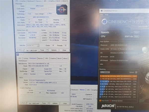 锐龙9 3950X是AMD三代Ryzen处理器中的“扛把子”,基本规格上,16核32线程,3.5/4.7GHz,72MB缓存,热设计功耗105W,钎焊散热。 在E3期间,3950X曾在液氮镇压下16核全开飙上了5.275GHz(@1.608V),从而打破了CineBench R15/R20和GeekBench 4多线程三项世界纪录。 E3上的纪录 此次,国外网友更进一步,把3950X的全核频率提升到5.4GHz(@1.776V),R15得分也打破好冒着热乎劲儿的5434,升至5501。 这套测试平台的内存数据美公布,只知道主板是微星的MEG X570 GODLIKE。之前那套平台也是这块主板,内存是芝奇Trident Z Royal DDR4(4533 MHz)。 稍稍遗憾的是,锐龙9 3950X要等到9月才上市。 |