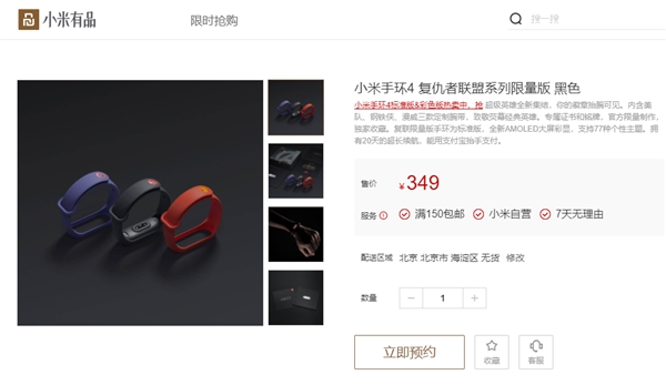 6月28日,今天上午10点,小米手环4复仇者联盟限量版在小米商城正式开卖,售价349元。 现在,这款手环已经登录小米有品,目前处于“预约”状态。据了解,小米手环4复仇者联盟系列限量版包含金属铭牌、收藏证书、定制腕带等,其中定制腕带为美队、钢铁侠、漫威三款,致敬荧幕经典英雄。 小米手环4使用了彩色AMOLED显示屏,屏幕尺寸为0.95英寸,分辨率为120×240,支持77种个性主题。内置6轴高精度传感器,带来6大运动模式,还可实时追踪游泳数据,支持智能泳姿识别、50米防水。 作为新增功能之一,小米手环4抬腕右滑即可唤醒小爱同学,也可以实现抬腕放音乐,抬腕定日程,抬腕扫码支付,抬腕记录运动等功能。 此外,小米手环4向左滑屏直达支付码,交费结账扫一下就付款。同时支持全国超过200个城市的公交,上下公交或进出地铁站,无需翻找卡片,一刷就过。 6月24日,首发开售仅8天,小米手环4全球出货突破100万支,平均每小时出货5000支,创小米手环有史以来最快出货速度。 |