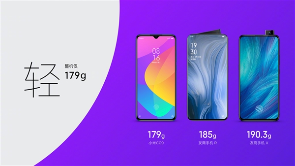 7月2日晚,小米正式发布了首次联手美图设计的全新机型“小米CC9”,其中CC代表Camera+Camera 为符合年轻人的品味,小米CC9设计了三种全新潮流配色,其中“白色恋人”宛如阳光洒在积雪上的梦幻色,“深蓝星球”炫彩CC纹若隐若现像彩虹穿梭于湖面,“暗夜王子”银灰光泽流转玻璃机身简约神秘,3D全曲面玻璃+全金属中框,整机重量仅179克,还提供了炫彩呼吸灯。 小米CC9采用水滴全面屏设计,完全沿用了小米9上的6.39英寸三星AMOLED屏幕,91%屏占比,支持VDE低蓝光护眼认证、硬件DC调光,并有第七代光感屏幕指纹识别,解锁速度提升10%。 不管多么轻 水滴屏这个坑 小米是跳进去了 拍照方面后置三摄,主摄为小米9同款索尼4800万像素,搭配800万像素超广角镜头、200万像素景深镜头 |