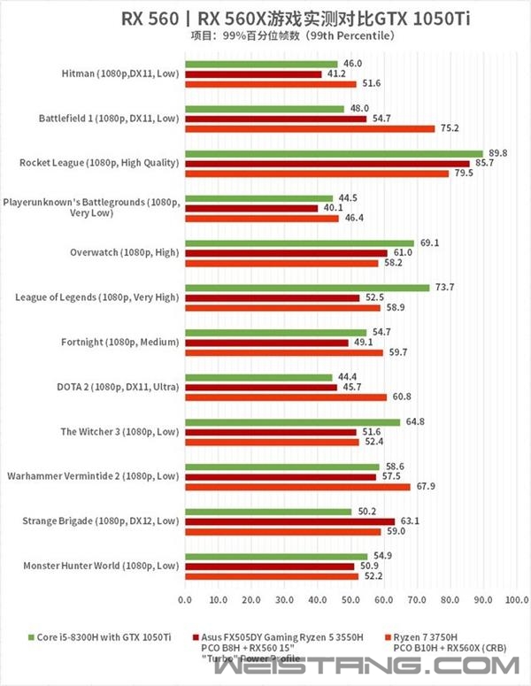 随着AMD锐龙平台崛起,3A平台概念又重归大众视野。 不过相对于桌面端而言,可能有不少用户在购买移动端产品时会遇到更多疑问,比如锐龙移动处理器性能怎样?与英特尔酷睿处理器对位关系如何?AMD笔记本显卡有哪些型号?性能又如何与N卡做区分? 今天,我们将通过本文为大家解读AMD移动级显卡与NVIDIA移动级显卡的对位关系和性能表现。 在英特尔尚未推出独立显卡之前,AMD是PC行业唯一一家同时拥有顶尖处理器和显卡厂商,CPU与GPU共同发力,使AMD能够独此一家的构建出“3A平台”这样的概念。 移动级A卡/N卡如何对位? 那么现阶段AMD移动显卡的构成是怎样的呢? 俗话说,“兵不在多而在精”,AMD在移动级领域正是如此。目前AMD移动显卡在笔记本上最主要应用的显卡包括AMD Radeon RX 560、AMD Radeon RX 560X两款。 二者相当于哪些N卡呢?其实际游戏性能表现如何?与N卡对位显卡的性能差异怎样呢? 从基本规格和性能来看,AMD Radeon RX 560、AMD Radeon RX 560X两款显卡基本与NVIDIA GeForce GTX 1050和GTX 1050Ti处于同一对位区间。 双方均为14nm制程工艺,在流处理器数量上,A卡处于领先地位,RX 560与RX 560X均为1024个,显存位宽双方均未128bit,显存容量A卡无保留均为4G。 而N卡则有2G和4G可选,显存类型均为GDDR5,四款显卡核心频率均不相同,N卡要略高一些,显存频率N卡同样要更高一些。 再来看A卡和N卡的对位示意图: 目前AMD Radeon RX 560、RX 560X的性能水准分别与GTX 1050、GTX 1050Ti基本持平,且在实际游戏中互有胜负。 不过如果从价格因素上考虑的话,AMD Radeon RX 560和RX 560X平台的游戏本产品整体要更有优势。 游戏性能实测 显卡性能虽然牵涉到不少参数,但流处理器数量的权重占比要更高,对性能影响更大,再者就是显卡频率。 因此单从基本参数上来看,NVIDIA GeForce GTX 1050独显其实与A卡两款的差距比较大,所以在实际测试中,我们只要了解RX 560、RX 560X以及GTX 1050Ti独显的性能表现就可以了。 下面我们看看实际游戏测试结果究竟如何? 本次测试共选用了12款热门游戏,以及3个不同的测试平台。 其中N卡选用了英特尔酷睿i5 9300H处理器+GTX 1050Ti显卡平台作为参考基准;A卡选择了Ryzen 5 3550H+RX 560以及Ryzen 7 3750H+RX 560X平台。 下列测试结果中,绿色代表英特尔酷睿i5 9300H处理器+GTX 1050Ti显卡平台,深红色代表AMD Ryzen 5 3550H+ RX560平台。 该平台我们选用了华硕飞行堡垒6s,型号为Asus FX505DY Gaming,它是一款15英寸游戏本,我们在测试时开启了Turbo高性能模式。而正红色代表Ryzen 7 3750H处理器+RX560X显卡平台。 此外在测试时,我们除了考察游戏的平均帧数表现之外,还引入了99%百分位帧数考察,该项考察是衡量游戏卡顿程度的指标。 简单地说就是剔除99%相似的帧数,只考察最差的那1%,因为它们往往决定了你的游戏是否会有频繁的瞬间卡顿现象发生。这个值越接近FPS越好,差得越多说明游戏越容易卡,或者卡顿越明显。 接下来我们看看两项测试的结果: 游戏平均帧测试结果 首先是游戏平均帧数测试。 12款参评游戏中,RX 560独显在《杀手》、《火箭联盟》、《堡垒之夜》、《DOTA 2》、《战锤:末世鼠疫2》、《怪物猎人:世界》6款游戏中的表现与GTX 1050Ti相仿,帧数互有胜负。 但总体不超过5fps;在《战地1》测试中明显领先;而在《绝地求生:大逃杀》、《守望先锋》、《英雄联盟》、《巫师3》、《异域奇兵》5款游戏中表现不如GTX 1050Ti,但也能够提供足够的画面流畅度。 RX 560X显卡规格要比RX 560略高,在《杀手》、《战地1》、《DOTA 2》、《战锤:末世鼠疫2》、《怪物猎人:世界》5款游戏中的表现明显领先GTX 1050Ti,平均大于6fps;在《绝地求生:大逃杀》、《堡垒之夜》2款游戏测试中基本持平;在《火箭联盟》、《守望先锋》、《英雄联盟》、《巫师3》、《异域奇兵》5款游戏测试中,流畅度落后于GTX 1050Ti,不过同样能够提供足够流畅的游戏画面。 99%百分位帧数测试结果 相对于平均帧而言,99%百分位帧数的表现更具参考价值,它能够反映出相应硬件平台游戏运行的稳定性。毕竟能够持续为玩家提供流畅的画面体验,远比画面波动、突然卡顿带给用户的体验更好。 综合来看,AMD平台最低帧数与平均帧数之间的差异更小,画面帧数波动更加平稳,不会出现大幅度降帧的情况,比如《异域奇兵》这款游戏最为典型,AMD平台虽然整体帧数没有特别高,但胜在稳定,能够给玩家更为平滑流畅的画面体验。 事实上,基于锐龙平台和AMD Radeon显卡打造的游戏本在拥有不错性能的同时,能够给用户带来更加实惠的价格。 比如在选择中端价位独显游戏本时,不妨考虑AMD Radeon RX 560或RX 560X平台的产品,与GTX1050或1050Ti性能相当甚至还有所领先,同时能够获得更为实惠的价格,这才是对消费者最好的回馈。 3A平台游戏本除了能够给用户带来足够好的性能之外,价格优势是其最为重要的价值所在,也是倍受用户认可的关键点,而且也是AMD一贯秉持的原则。 用“物美价廉”四个字,最能概括AMD平台游戏本的特性。 |