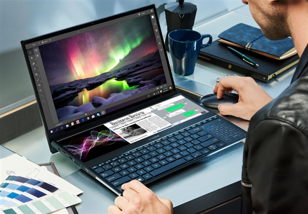 6月初的台北电脑展上,华硕推出了配备了两块4K屏幕、顶级八核酷睿i9-9980HK处理器的全新笔记本ZenBook Pro Duo,并于7月初登陆国内市场,定名为“灵耀X2 Pro”。 如今,隶属于Intel创意设计PC的这款顶级本本终于摆上货架预售,要价高达29999元人民币! 华硕灵耀X2 Pro拥有两块屏幕,其中主屏幕是15.6英寸OLED触控屏,分辨率3840×2160,窄边框屏占比88%,色域覆盖93% DCI-P3色域,副屏则是14英寸LCD触控屏,属于增强版ScreenPad Plus智能触控屏,分辨率3840×1100(32:9),两块屏幕等宽,可以无缝交互集成。 副屏支持多点触控和手写功能,拥有更大的可视空间,还能拆分为三块区域,分部使用多窗口运行,一屏三用。 对于视频剪辑、图片编辑等专业影像工作者,软件的工具栏、源文件或素材都可下放至ScreenPad Plus,分散主幕显示压力的同时,更带来诸多操作便利。 对于音乐制作等创意工作者,ScreenPad Plus就是直观且直接的创意设计营,包括音乐混响的制作、手写绘画等工作都可在此实现。 对于游戏主播,ScreenPad Plus可以主屏直播游戏、副屏实时反馈弹幕或即时通信,互动更直接、真实。 副屏的加入在一定程度上挤压了键盘空间,但灵耀X2 Pro仍然提供了全尺寸实体键盘和所有Fn功能键,同时右侧特别设计了二合一的数字键、触摸板,还有一键全速散热等特殊功能键。 配置上,灵耀X2 Pro是目前华硕轻薄本中的顶尖旗舰,除了八核心i9-9980HK处理器之外,还提供了NVIDIA RTX 2060显卡、32GB DDR4-2666内存、Intel 1TB傲腾固态硬盘,并有一个雷电3、一个HDMI、两个USB-A、一个3.5mm,八芯锂离子电池续航超过8个小时。 外观上也具备独特魅力,首次采用偏心式的同心圆拉丝纹路处理,独到极光蓝配色,整机厚度24mm,重量2.5kg。 |