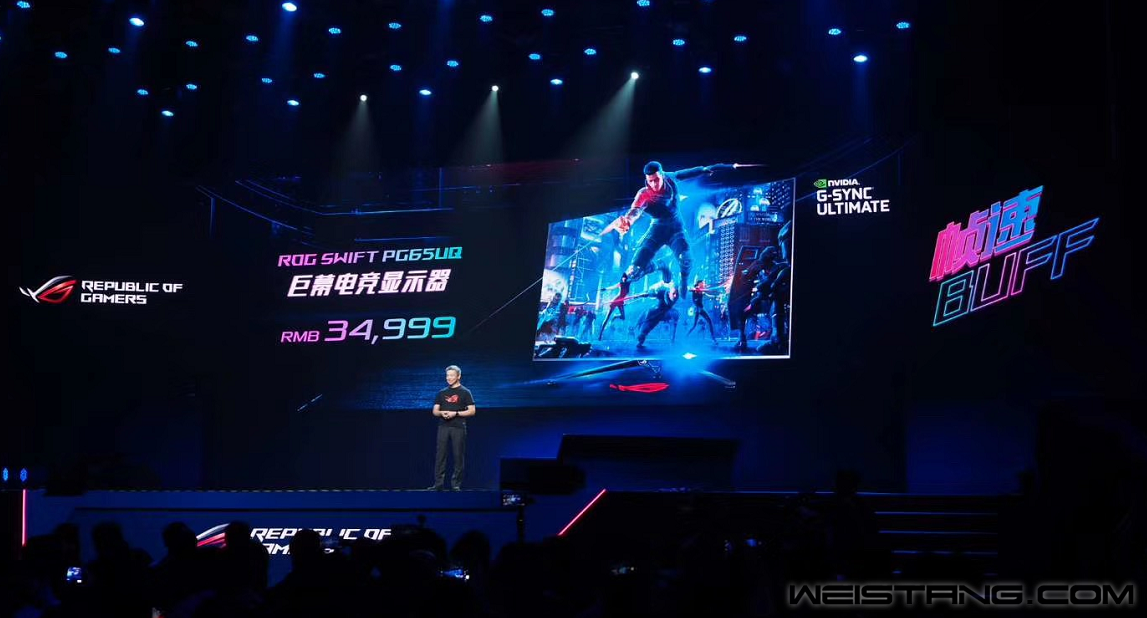 2019年7月23日,ROG玩家国度在北京凯迪拉克中心M空间召开 “天生BUFF”ROG新品发布会。华硕集团董事长施崇棠、华硕共同执行长许先越、腾讯副总裁王波、京东集团副总裁姚彦中、华硕电脑全球副总裁许佑嘉、华硕电脑中国业务总部董事长石文宏及各行各业的合作伙伴共同出席了本次盛会,共同见证ROG最新电竞产品的面市,见证ROG信仰之力所带来的极致盛宴。 ROG一直是电竞潮流的风向标,秉承着“只为超越”的信念,多款电竞新品是首度在中国大陆地区亮相。比如国内首款巨幕电竞显示器ROG SWIFT PG65UQ,全新升级新一代“大金刚”IPS屏ROG SWIFT PG279QR,还有万众瞩目的ROG游戏手机2(腾讯游戏深度定制)、ROG幻15笔记本,以及主板、显卡、路由器、外设、散热器、电源、机箱等产品线的信仰新品,为现场玩家展示了ROG强大的电竞基因与创造力。活动展示区还设立了四大游戏情景展示区提供来宾试玩,其中最为耀眼的高性能电竞显示器吸引了大量玩家驻足试玩,在“帧速BUFF”加持下,为现场观众带来了高端信仰电竞体验。 金刚之首PG279QR帧速全开,万众期待颜值升级 本场ROG新品发布会的显示器新品中,最受期待的莫过于在全球首发的ROG SWIFT PG279QR电竞显示器。作为备受追捧的“大金刚”PG279Q的升级款,PG279QR延续了前作均衡的高端性能,焕新升级高颜值,面市后必将掀起新一轮的电竞风暴。 ROG SWIFT PG279QR采用27英寸IPS电竞级面板,拥有2K QHD (2560x1440)分辨率,具备178°广视角,带来清晰生动的视觉体验。搭载最高165Hz的疾速刷新率与NVIDIA® G-SYNC™技术,可有效消除游戏画面中恼人的撕裂、卡顿及延迟现象,为玩家带来极致流畅的画质视觉快感。华硕独家的GamePlus快捷键强化游戏功能,GameVisual使视觉效果达到最佳的状态,全新“大金刚”无疑是游戏战场上所向披靡的悍将。 除了极致帧速的硬件参数,ROG PG279QR电竞显示器的外观设计也获得全新升级。ROG PG279QR采用人体工学设计的三角底座支架,不仅可以进行上下倾斜、左右旋转等操作,底部还新增了信仰之力爆棚的AURA SYNC投影灯。同时支持AURA神光同步组件,与其他华硕AURA灯效产品轻松打造酷炫的电竞氛围同步灯效,信仰倍增提升战力。ROG PG279QR售价4999元,将于今年8月上市。 120Hz疾速刷新,ROG游戏手机2最佳手游伴侣 近年来,手机游戏的迅猛发展绝对震惊业界,《王者荣耀》《和平精英》等热门竞技手游家喻户晓,昭示着手机游戏当之无愧的当下电竞之王的地位。本次新品发布会上,ROG盛大展示手机游戏解决方案,最新发布的与ROG游戏手机2(腾讯游戏深度定制),搭配ROG电竞显示器,为玩家带来了新鲜畅爽的大屏手机体验。 毫无疑问,拥有业内最强120Hz电竞屏的ROG游戏手机2(腾讯游戏深度定制),所搭配的电竞显示器必然是高性能、高帧率的巅峰作品,在现场的手游体验区中,用于手机投屏的电竞显示器正是上市后备受好评的ROG STRIX XG32VQR。这款拥有31.5英寸的曲面HDR电竞显示器,通过端口与ROG游戏手机2实现进行连接,2K分辨率满帧输出,吸引了大量玩家驻足体验。31.5英寸曲面大屏带来的宽广沉浸视野,高帧率带来的畅快体验,配合玩家国度引以为傲的神光同步电竞氛围灯,无疑是别具一格的娱乐享受。 信仰显示器全家桶,家庭娱乐大中小屏全包罗 当下玩家对于电竞硬件的追求,已经不仅仅局限在小小的书桌上。想玩就玩,无处不玩。为此,玩家国度把目光投射到对于大屏有着执着追求的高性能PC及家用游戏主机玩家。本次发布会上,ROG搭建了超能电竞客厅、男生电竞房和女生电竞房三个不同的主题空间,诠释了家庭娱乐的全套解决方案。 众所周知,玩家国度在今年6月领先业界成功发售65英寸的巨幕电竞显示器ROG SWIFT PG65UQ。在玩家的宽敞客厅,ROG SWIFT PG65UQ巨幕电竞显示器无疑是C位的不二之选,通吃PC、主机两大平台,一屏全搞定。 ROG SWIFT PG65UQ采用65英寸384区全阵列直下式背光面板,拥有4K UHD (3840x2160)分辨率的广视角面板,UHD Premium HDR认证的1000尼特峰值亮度可提供杰出的HDR视觉效果。涵盖了影院级DCI-P3色域,显示器超频后最高刷新率可达144Hz。它还搭载最顶级的NVIDIA® G-SYNC™ ULTIMATE智能同步技术,可为游戏玩家带来极致顺畅无卡顿的游戏体验,让电竞游戏尊享影音娱乐与流畅暴击的双重视觉感受。 霸气全开,战力无敌!这款BOSS级的巨幕电竞显示器当仁不让地成为发布会来宾眼中的焦点。粉丝们除了可以在现场感受之外,玩家国度还宣布与国内五星级酒店——杭州滨江艺珺酒店联合打造“ROG豪华电竞行政套房”。售价34999元的ROG SWIFT PG65UQ一经公布,便点燃了全场来宾的情绪。 在男生电竞主题房中,ROG STRIX XG438Q绝对是极为合适的选择,超大的43英寸显示器完全满足男生爱玩赛车竞速、FPS射击以及3A大作的需求。ROG STRIX XG438Q提供4K UHD (3840x2160)分辨率,最高120Hz刷新率,搭配FreeSync 2 HDR智能同步技术,轻松挥别卡顿延迟与动态模糊,体验极度流畅清晰的游戏沉浸感。此外,ROG STRIX XG438Q还通过了VESA DisplayHDR 600标准认证,最高可提供600尼特的亮度,兼容多种HDR模式,完美适配PC、PS4 Pro以及Xbox One X等多个游戏平台,获得绝佳的显示效果。ROG STRIX XG438Q现已上市,电商渠道售价8999元。 在女生电竞房中,摆放了一台女性玩家定制的粉爱配色ROG SWIFT PG349Q,搭配一套粉嫩的ROG PNK电竞外设以及HelloKitty凯蒂猫主题ITX机箱,动感科技范儿之余,完美击中了萌力全开的少女心。ROG
