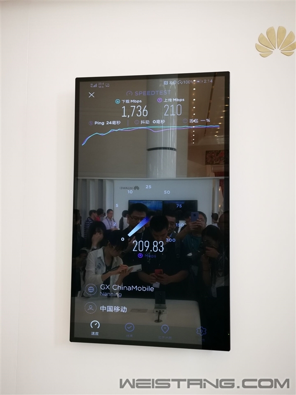 7月26日,华为正式面向国内市场推出首款5G手机Mate 20 X 5G,并在现场展示了华为5G的超高传输速度。 Mate 20 X 5G在原版手机的基础上,加入了华为巴龙5000基带,与华为麒麟980处理器结合,实现对5G/4G/3G/2G的全模支持,并且同时支持NSA非独立组网、SA独立组网和三大运营商的所有5G频段。 根据官方指标,巴龙5000基带在6GHz以下主力频段理论下载速度可达4.6Gbps,在毫米波扩展频段则可达6.5Gbps,再叠加LTE双连接的话最快能到7.5Gbps,相当于4G LTE可体验速率的10倍,同时还有业界最快的5G上传速度,能达到240Mbps。 根据现场实地展示,华为5G在中国移动网络下的实际下载速度可以达到惊人的1740Mbps左右,而上传速度也能超过200Mbps。 相比之下,同样环境时4G下载和上传速度只能做到80Mbps、10Mbps左右,完全是两个世界。 |