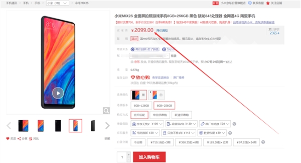 下半年小米将推出MIX系列新旗舰,如今老一代旗舰价格已经大幅下调,性价比更加突出。 7月27日消息,小米MIX 2S在京东平台到手价为2099元(8GB+256GB),比首发价便宜1900元。 小米MIX 2S是小米2018年推出的首款旗舰,它采用5.99英寸无刘海全面屏,分辨率为2340×1080,背部为四曲面陶瓷机身,在2000元档位使用陶瓷机身的手机比较罕见。 核心配置上,小米MIX 2S搭载高通骁龙845处理器,前置500万像素,后置1200万广角+1200万长焦双摄,其中1200万广角镜头为索尼IMX363,单位像素面积为1.4μm,支持Dual PD双核对焦及四轴光学防抖,电池容量为3400mAh,支持无线充电(小米首款支持无线充电的旗舰)。 此外,小米MIX 2S还内置智能语音助理小爱同学,可通过语音唤醒。开车时想打电话、发短信、导航等都可以一句话完成,简单快捷。 综上所述,小米MIX 2S在同价位极具竞争力,你会考虑购买吗? |