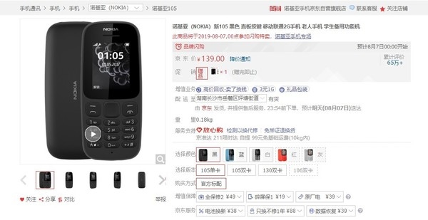 前不久,我们报道过诺基亚有一款型号名为“TA-1174”的功能机入网工信部,据了解,这款功能机就是诺基亚105。近日,这款手机已经在京东开卖,售价139元起,有黑、蓝、白、红、灰多色可选。 在设计上,该手机秉承斯堪的纳维亚风格,没有多余的装饰,整体看起来十分简约;机身采用符合人体工程学的设计,使手机更加贴合手掌,单手持握更加舒适;正面配备1.8英寸QVGA屏幕,采用独立按键的设计,按键与按键之间有着较大空隙,即使闭着眼睛打字也相当流畅。 在续航方面,根据介绍,该机配备一块800mAh电池,一次充电后,可以跟朋友畅聊15个小时,采用标准的USB接口,充电十分方便。存储方面,该机通讯录可存储2000个联系人,可容纳高达500条短信。并且内置经典的贪吃蛇游戏,可以帮助用户打发无聊的时间。 不过,诺基亚105仅支持2G网络。目前,5G网络已经崭露头角,并毫无疑问会逐渐普及,2G、3G网络此前还有过退网的传闻。在这样的情况下,你会购买诺基亚105吗? |