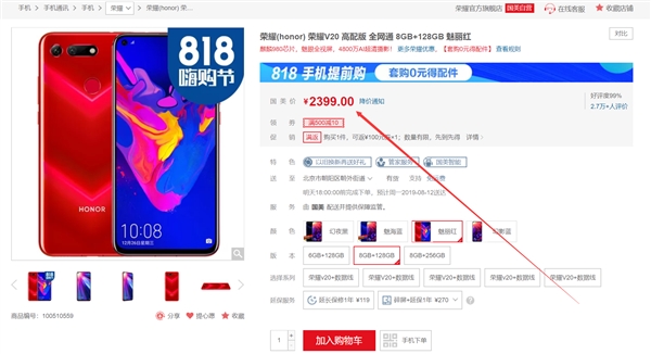 8月10日消息,荣耀V20在国美商城降价促销,8GB+128GB版下单立减10元,到手价为2389元,在同价位极具竞争力。 荣耀V20发布于2018年12月份,该机被定义为“科技标杆”。它创新性采用屏下摄像头设计,将前置2500万像素摄像头潜隐于屏幕之下。官方介绍,荣耀V20前置摄像头区域孔径做到了4.5mm,实现与屏幕的完美融合。 核心配置上,荣耀V20搭载麒麟980处理器,这是全球首款基于7nm工艺制程打造的手机芯片。同时麒麟980在全球范围内率先实现基于Cortex A76架构的开发商用,并在业内首商用Mali-G76 GPU,性能强悍。 不仅如此,荣耀V20后置4800万+TOF立体深感镜头,其中4800万主摄为索尼IMX586,这是全球首款搭载索尼4800万像素的麒麟980旗舰,其电池容量为4000mAh。 此外,荣耀V20搭载Link Turbo全网络聚合加速技术。它可智能选择合适网络进行关键数据分流,保证及时应用的网络需求;还可让用户在Wi-Fi和蜂窝网络下,两路链接同时收发数据,保证关键数据的低延时。 |