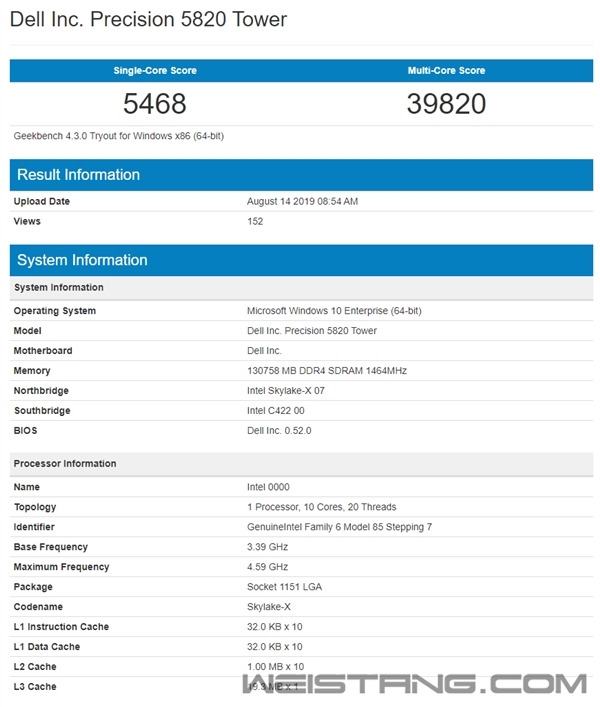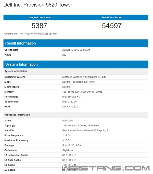 桌面发烧友的盛宴又要上桌了。AMD那边的第三代线程撕裂者跃跃欲试,7nm、Zen 2、PCIe 4.0都是稳稳的了,就看能不能突破32核心64线程,Intel这边的Cascade Lake-X也陆续现身了。 Intel今年4月份发布了第二代可扩展至强Cascade Lake,新一代桌面发烧级酷睿X系列也必将由它衍生而来,不过本质上还是14nm工艺和Skylake架构,核心数最多也仍然是28个,只不过在技术规格上做了提升。 现在,GeekBench 4测试数据库里出现了一款Intel 18核心36线程的新品,设备标识字符串为“GenuineIntel Family 6 Model 85 Stepping 7”,正是Cascade Lake-X,而目前Skylake-X系列对应的是“GenuineIntel Family 6 Model 85 Stepping 4”。 这颗新品尚无具体型号,只检测为“Intel 0000”,显然还是个工程样品,而检测出来的频率基准2.19GHz、睿频3.28GHz显然不对,因为单核、多核性能相比目前同样18核心、3.0-4.4GHz的旗舰酷睿i9-9980XE分别高了3.4%、7.4%。 另外还有一颗10核心20线程的,频率3.4-4.6GHz,比现在的酷睿i9-9900X 3.5-4.4GHz加速高了200MHz,但基准低了100MHz,自然也不太准。 很显然,Cascade Lake-X并没有本质性的变化,还是继续提升频率(三级缓存没变还是18核心对应24.75MB),四通道内存的频率也有望继续拔高。 但不知道热设计功耗是不是能继续控制在165W,也不知道会不会有更多核心的更高端型号,因为现在这样在AMD撕裂者家族面前依然是完全抬不起头来的。 另外值得关注的是型号命名。刚发布的十代酷睿已经用上了五位数加字母的编号,酷睿X-9000系列也到顶了,难道下一代旗舰会叫“酷睿i9-10980XE”? |