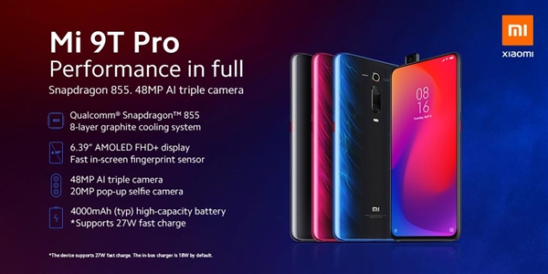 8月20日晚间,小米在德国、西班牙、意大利、法国和英国推出小米9T Pro(对应国行版K20 Pro),售价449.9欧元(约合人民币3500元,6GB+128GB)。 小米9T Pro采用了6.39英寸三星AMOLED显示屏,分辨率为2340×1080,搭载高通骁龙855旗舰平台,配备LPDDR4X内存+UFS 2.1闪存,前置2000万像素,后置4800万主摄+800万长焦+1300万超广角三摄,电池容量为4000mAh,支持27W快充。 与小米9对比,小米9T Pro采用的是无刘海、无水滴、无挖孔的全面屏形态,而且它保留了3.5mm耳机孔。不过后者不支持无线充电(小米9支持20W无线闪充),没有小米9轻薄。 值得注意的是,小米9T Pro支持屏幕指纹识别。官方称它搭载第七代屏幕指纹识别技术,最新的屏下镜头式光学模组,感光面积提升100%,软件算法大升级,解锁更快更智能更安全。 |