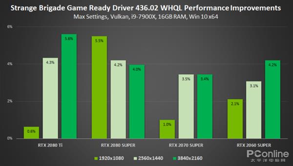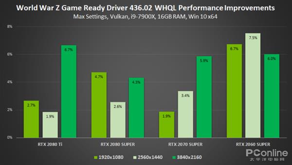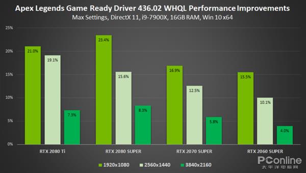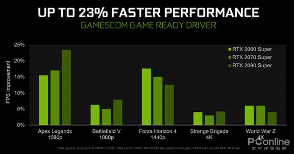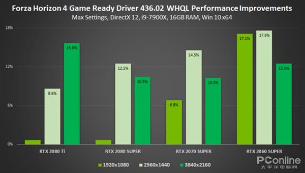 近日NVIDIA发布了新版驱动436.02,这个驱动并不是往常的显卡驱动,而是很特别的那种,能让游戏帧数biubiu地提升很多的驱动。 你说的这个显卡驱动好像真的很厉害的亚子,那么下面我们仔细盘点一下新驱动有啥亮点吧。 性能猛提23% 首先是性能上的提升,NVIDIA在官方的演示中使用了RTX Super的三款新显卡,游戏帧数提升集中于《极限竞速:地平线4》、《Apex英雄》、《战地5》、《奇异小队》、《僵尸世界大战》这几款热门游戏上,在新驱动的加持下2080 Super在《Apex英雄》甚至提升了24%这么多的游戏帧数。 |