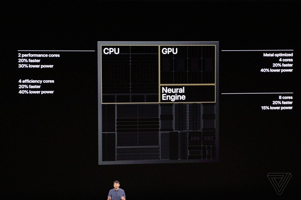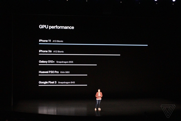 iPhone 11发布的同时,苹果毫无意外地推出了A13 Bionic仿生处理器,而且极为罕见地和友商进行了对比,这对于苹果来说真的是相当反常。 A13处理器采用7nm工艺制造,85亿个晶体管,集成六个CPU核心,其中两个大核心性能提升20%、功耗降低30%,四个小核心性能提升20%,功耗降低40%,同时集成四核心GPU,性能提升20%,功耗降低40%、Metal优化。 还有八核心神经引擎(类似NPU),性能提升20%,功耗降低15%,以及机器学习加速单元,矩阵乘法性能提升6倍。 性能方面,很意外地,苹果不仅对比了上代A12,还对比了高通的骁龙855、骁龙845,以及华为麒麟980,当然没有最新的麒麟990,毕竟还没数据。 虽然苹果没有给出具体领先幅度,但是按照惯例,这方面苹果大幅领先是没什么悬念的。 同样意外的是,巨人网络来到了现场展示A13强大的GPU性能,是一款首次公布的新游戏《Pascal's Wager》,下个月上架App Store,但不属于Apple Arcade。 |