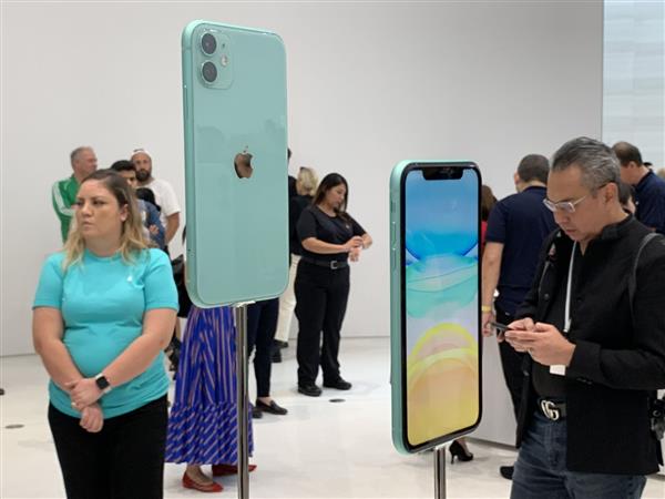 来看高清真机照。 9 月 11 日凌晨,苹果发布了 2019 年 iPhone 产品阵容,每款新手机都是去年主打产品的的直接继承者。发布会之后有开放给媒体和观众的实机体验区,我们可以跟随外媒近距离接触 iPhone 11,iPhone 11 Pro 和 iPhone 11 Pro Max,看看它们带来的第一印象。iPhone 11醒目的背面,新的中心位置苹果 LOGO 和新的浴霸双摄系统。 |