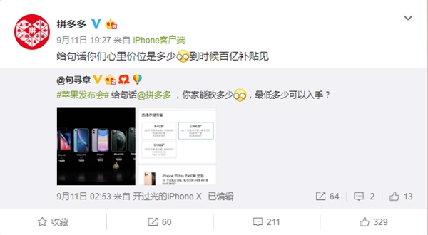 9月12日消息,iPhone 11系列将于明天晚上8点开始预购。 在预购之前,iPhone 11在第三方电商平台破发,农业银行APP内仅需5069.06元即可入手64GB版iPhone 11,比官方首发价要便宜429.94元。 值得注意的是,拼多多官方微博也表示会有百亿补贴,届时iPhone价格将会更具竞争力,建议买家等一等。 和上一代对比,iPhone 11系列最大的升级点之一是相机。iPhone XR升级版iPhone 11升级为双摄,它由1200万广角+1200万超广角双摄组成,广角镜头支持OIS光学防抖。 核心配置上,iPhone 11采用6.1英寸Liquid显示屏,分辨率为1792×828,同样搭载苹果A13仿生芯片,前置1200万像素。 售价方面,iPhone 11 64GB版售价5499元,128GB版售价5999元,256GB版售价6799元,提供黑色、白色、红色、黄色、紫色、绿色等配色。 |
