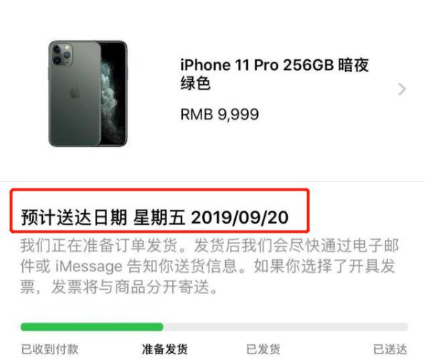 自9月13日晚20点,iPhone 11系列新品正式开启预售至今,第一批抢先预约下单的部分订购者在订购记录跟踪中已可以看到,订单更新为准备发货状态。有媒体报道,苹果iPhone 11和iPhone 11 Pro现已开始铺货,第一批订单计划于9月20日星期五之前到达。 目前,iPhone 11 已陆续到达仓库,20号上午前会疯狂开始出货。近日有网友爆料称,在中国仅有几十部手机可在19号提前激活使用,这些应该是由苹果公司总部赠送的手机。 另外苹果发货流程规定,其他任何人理论上都是20号才会收到新机,否则如果提前被激活一台,负责人则被罚款20万元。调查显示,每年都会有很多人无意中在规定发货日期前把货流出去,导致部分新机提前激活,因此猜测此次重罚规定,是为了保证今年9月20日激活时的仪式感。 关于iPhone 11预售情况分析,用户对新配色的购买需求明显相对较强。天猫苹果官方旗舰店预售当日,iPhone 11 Pro暗夜绿数度被抢空,为满足用户热烈的购买需求,天猫苹果官方旗舰店连夜补货4次。据悉,iPhone 11 Pro的暗夜绿色、iPhone 11的绿色与紫色,发货日期均比其他配色延迟2–3周或更长。 另有媒体爆料,这几款爆款配色的手机不久后或有涨价趋势。用户对新配色的喜爱,远远盖过了对三摄镜头的吐槽,看来颜值真的很重要。 |