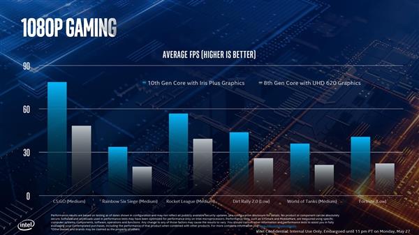 随着人们办公、娱乐要求的不断提高,笔记本需要适应的计算环境也日趋复杂了,它不仅需要强大的CPU性能,GPU性能也很重要——GPU不仅关乎图形性能,未来还会影响图像/视频处理、AI加速等方面的性能。 正因为如此,新一代处理器是要CPU、GPU齐头并进的,这也是Intel在十代酷睿Ice Lake处理器上采取的策略,因为这一代的核显升级到了全新的Gen 11架构,浮点性能相比上代产品翻倍,可以满足主流游戏及应用的要求。 在十代酷睿处理器中,Ice Lake处理器的Gen11核显规模更庞大,执行单元数量一下子提升到最多64个,最高频率1.1GHz,浮点性能最高单精度1.12TFlops、半精度2.25TFlops,同时增强光栅器,每时钟周期可处理16个像素,三级缓存也增大到3MB。 Gen11核显架构、规模大涨的后果就是游戏性能直线提升,拓宽了架构、优化了能效、重塑了内存子系统,其中48/64单元的Gen11核显可以保证多数游戏大作的平均帧率超过30FPS,部分还能突破60FPS。 理论性能翻倍之后,十代酷睿处理器的游戏性能到底有什么样的变化呢?前不久Notebookcheck、Pcper等网站都测试了十代酷睿笔记本,使用的处理器主要是15W-25W TDP的酷睿i7-1065G7处理器,它是4核8线程,睿频3.9GHz,整合Iris Plus核显,64个EU单元,频率1.1GHz。 实际性能不止于此,在坦克世界、彩虹六号、地铁:离去、世界大战Z、全战:三国等主流游戏中,拥有Gen11核显的酷睿i7-1065G7处理器性能也大涨,在1080p分辨率下确实可以做到30fps的帧数,至少三款游戏的平均帧还达到了60fps以上,是前代处理器游戏性能的两倍多。 得益于Gen11核显的架构、规模提升,十代酷睿中的Ice Lake处理器在GPU性能上完成了一次华丽的转身,原本不能流畅运行的游戏现在可以保证1080p下实现30fps的帧速,部分游戏完全可以做到60fps帧速,流畅度是没问题的。 十代酷睿处理器的出现,使得主流轻薄笔记本已经没必要再额外搭配独显了,Ice Lake的Gen11核显游戏性能已达主流水平,完全可以取代MX150/MX250这样的独显,不仅可以降低整机功耗,提高续航,顺带着也降低了整机的成本,一举多得。 |