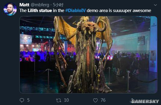 在昨晚的暴雪嘉年华上,《暗黑破坏神4》的设计师Matt发推分享了一张在会场拍摄的莉莉丝的巨型雕像的照片,看起来十分酷炫。 还有在会场的其他玩家也拍摄了照片,据称,这个雕像高达12英尺(约3.6米),并且细节也很精致,整体效果非常的震撼。就在刚刚,《暗黑破坏神4》的官方推特也向大家分享了一张这座雕像的美图。 |