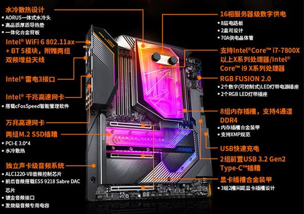 11月份,技嘉发布了新一代X299主板,其中旗舰中的旗舰X299X AORUS Xtreme Waterforce主板为水冷设计,日前已经正式开卖,售价20001元(你没看错),赠送32GB内存,晒单会赠送500元E卡。 Intel前不久推出了代号Cascade Lake-X的十代酷睿X处理器,依然是最多18核36线程,售价暴跌50%,顶级酷睿i9-10980Xe也只要979美元,国内则要12999元,好在这一代处理器不需要换平台,可以继续用X299芯片组。 技嘉也针对新的酷睿X处理器推出了新一代的雕牌X299X主板,是目前市面上唯一同时拥有雷电3、双万兆网卡的主板,无需占用PCIe扩展插槽即可提供最顶级的传输速度。 其中,技嘉X299X AORUS Xtreme Waterforce主板是顶级旗舰,预装全板水冷散热方案,16相数字供电,8层PCB设计,技嘉特色的2盎司铜用料,还有高达70A电流的PWM供电电路。 扩展性上,这款主板支持双雷电3接口,三条PCIe 3.0 x16,两个M.2插槽,八条内存插槽。 网络方面,千兆+万兆双网卡,支持WiFi 6及BT5无线,赠送2组双频增益天线。 详细规格如下: |